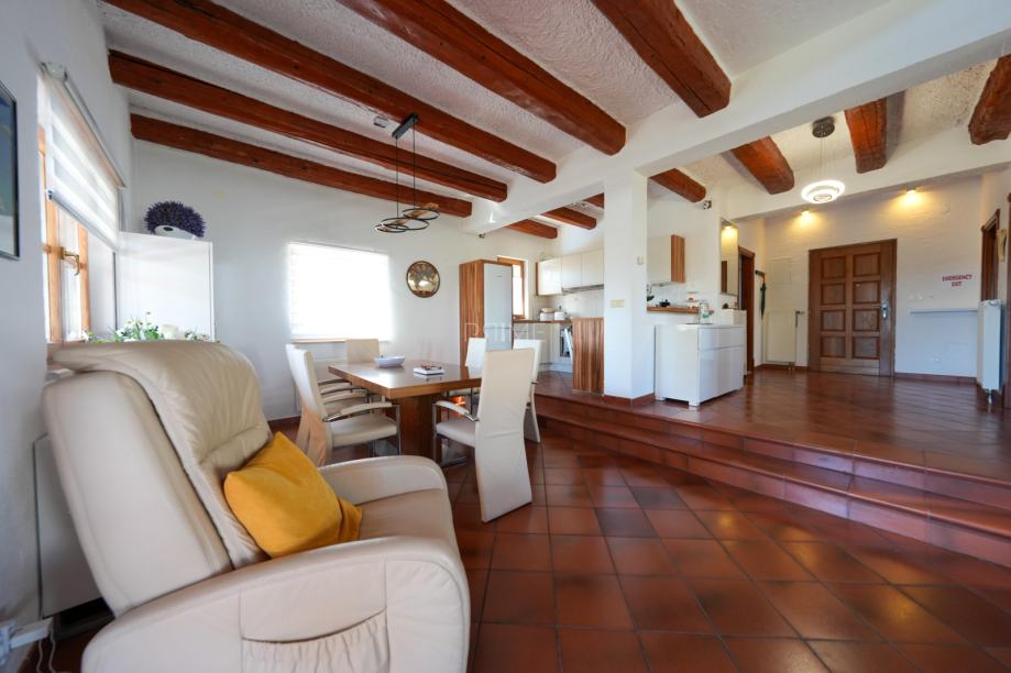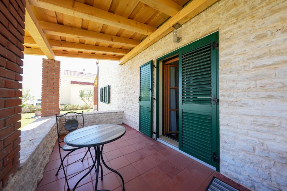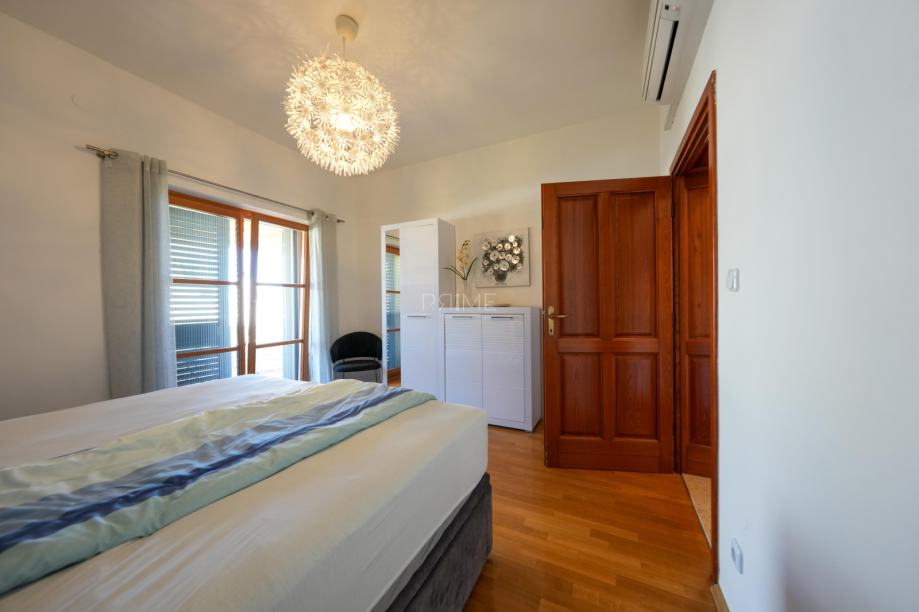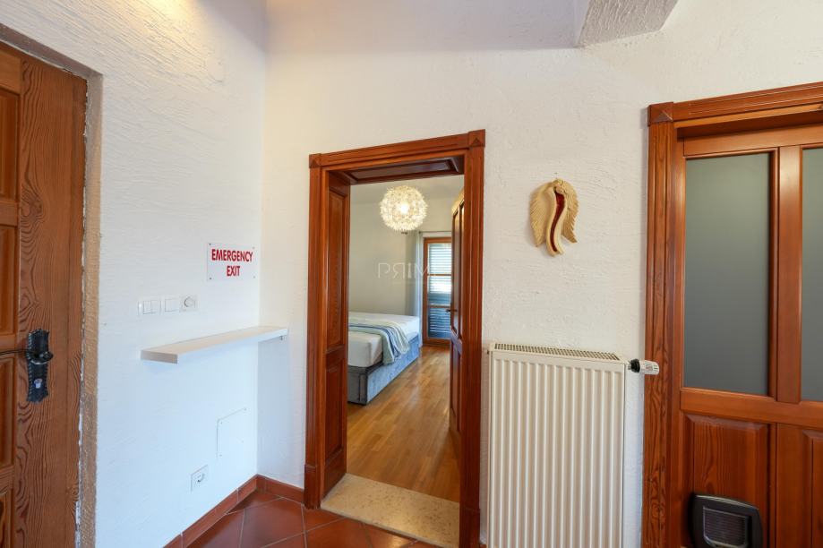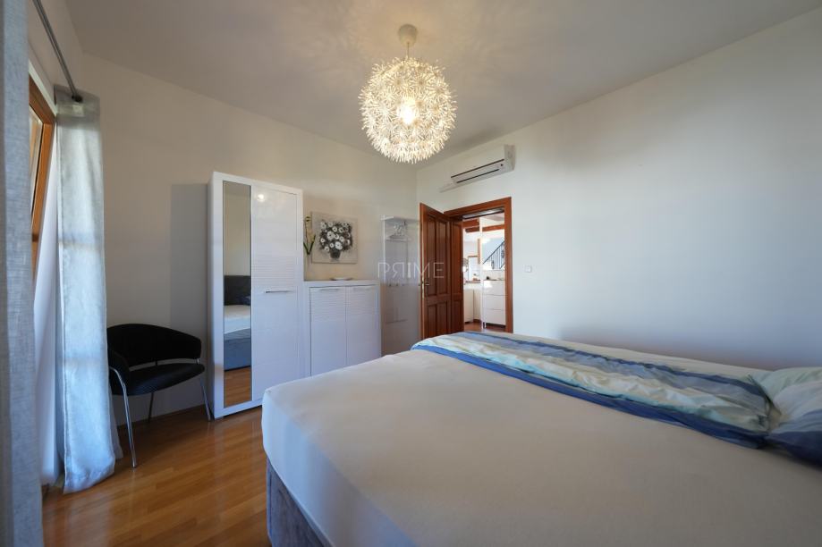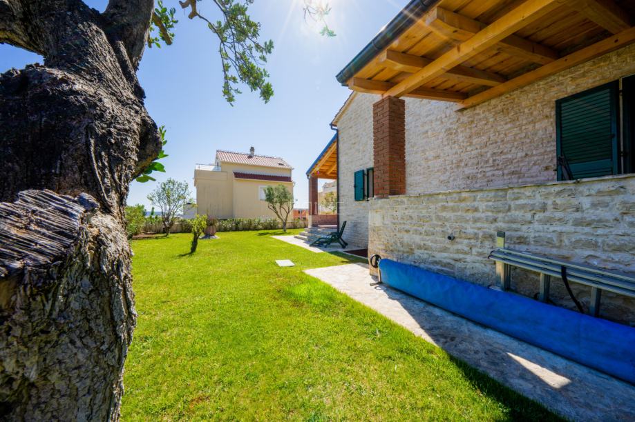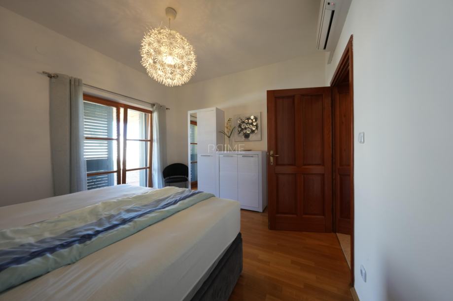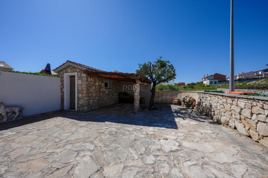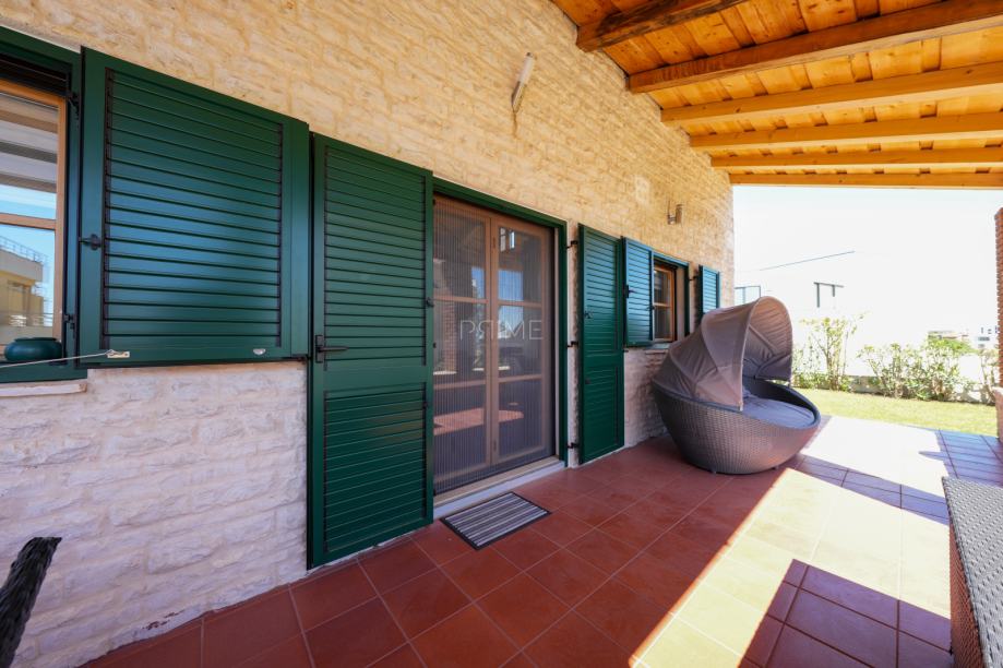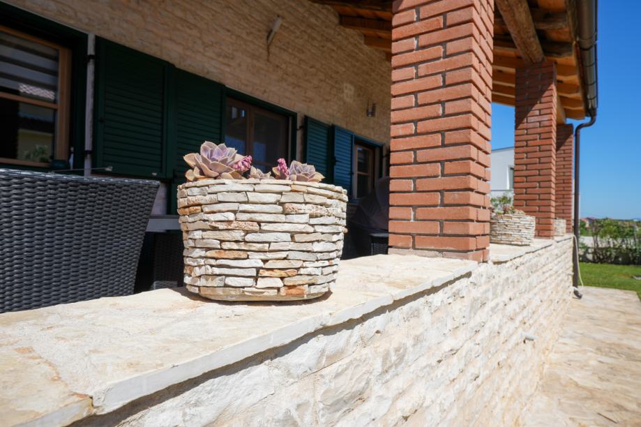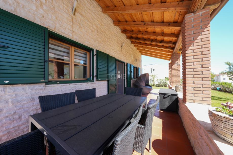Prekrasna kamena vila površine 397 m2 izgrađena je na zemljištu površine 800 m2. Sastoji se od tri etaže podruma, prizemlja i kata. U podrumu se nalazi prostor za druženje, igraona, wellnes ( sauna), kupaona i strojarnica. Prizemlje se sastoji od kuhinje, blagovaone, dnevnog boravka, kupaone i spavaće sobe dok se na prvome katu nalaze dvije spavaće sobe i velika kupaona. U dvorištu se nalazi grijani bazen (38 m2), okućnica je prekrasno uređena i održavana. Nalazi se na mirnoj lokaciji u okruženju novoizgrađenih vila. Udaljenost od mora i najbliže plaže je 1500 metara. Prodaje se kompletno namještena i opremljena. Više informacija dajemo na upit!