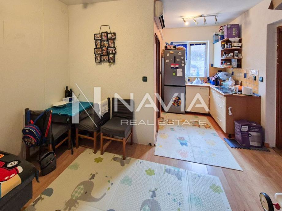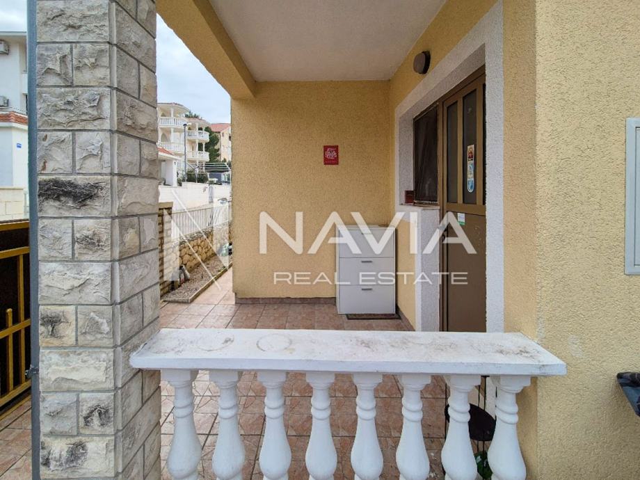 Na prodaju je stan ukupne površine 35 m², smješten u mirnoj slijepoj ulici u Vodicama, u prizemlju zgrade s dva kata.