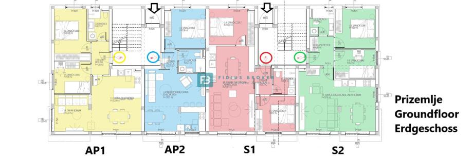 Stan S1 ukupne korisne površine 61,19 m2 (stambena površina 54,49 m2 + vrt 37 m2 + parking 15 m2) nalazi se u prizemlju. Stan funkcionalnog rasporeda sastoji se od ulaznog prostora, kupaonice, dvije spavaće sobe, kuhinje s blagovaonicom, dnevnog boravka koji ima izlaz na terasu i vrt površine 37 m2. Stanu pripada jedno parkirno mjesto. Cijena iznosi 180.000 € (Kupac je oslobođen plaćanja 3% poreza na promet nekretninama).
