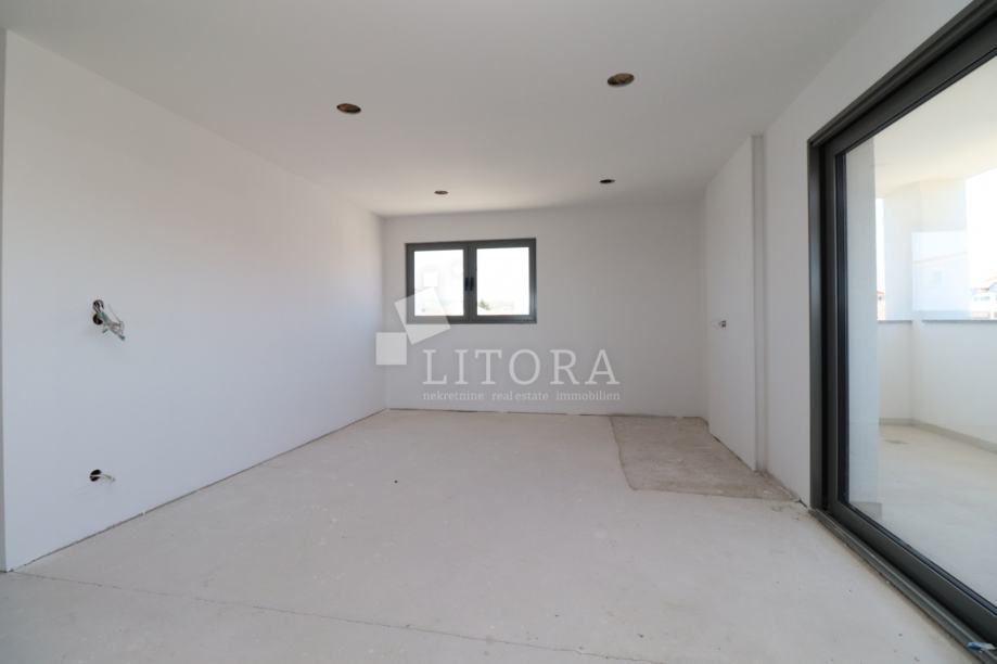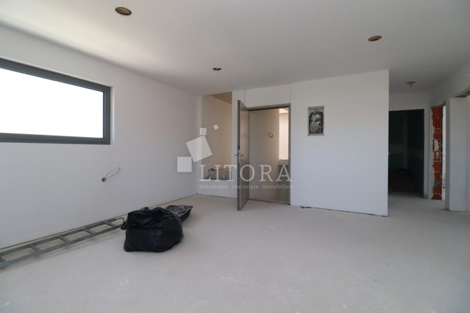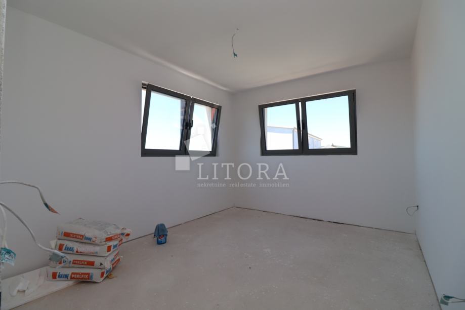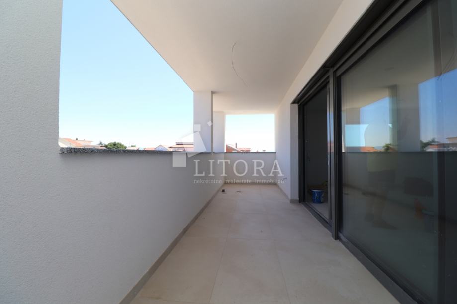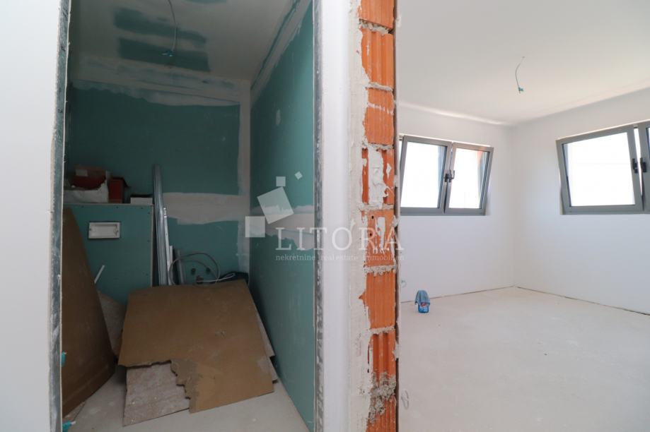 Apartman se nalazi u mirnom dijelu Vodica, smješten u manjoj stambenoj zgradi novije gradnje. Apartman se nalazi na drugom katu i zauzima čitavu etažu zgrade, s ukupnom korisnom površinom od 93,21 m². Sastoji se od: ulaznog predsoblja, dvije spavaće sobe, WC-a, kupaonice, prostranog dnevnog boravka s kuhinjom i blagovaonicom, i velike terase od 17m2. Apartman je u završnoj fazi uređenja, a zgrada će biti useljiva do jeseni. Oprema uključuje: protuprovalna ulazna vrata, klima uređaje u svakoj prostoriji, komarnike, podno grijanje, aluminijsku stolariju s troslojnim staklom i UV zaštitom. Apartmanu pripada jedno vanjsko parkirno mjesto. Udaljenost do plaže: 690 m a do centra mjesta: 800 m.