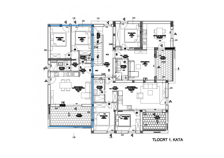 Oprema uključuje termo fasadu, protuprovalna vrata, električne podizače roleta s komarnicima, podno grijanje u kupaonicama, klima uređaje u svim prostorijama, kvalitetne sanitarije i moderne staklene ograde na terasama