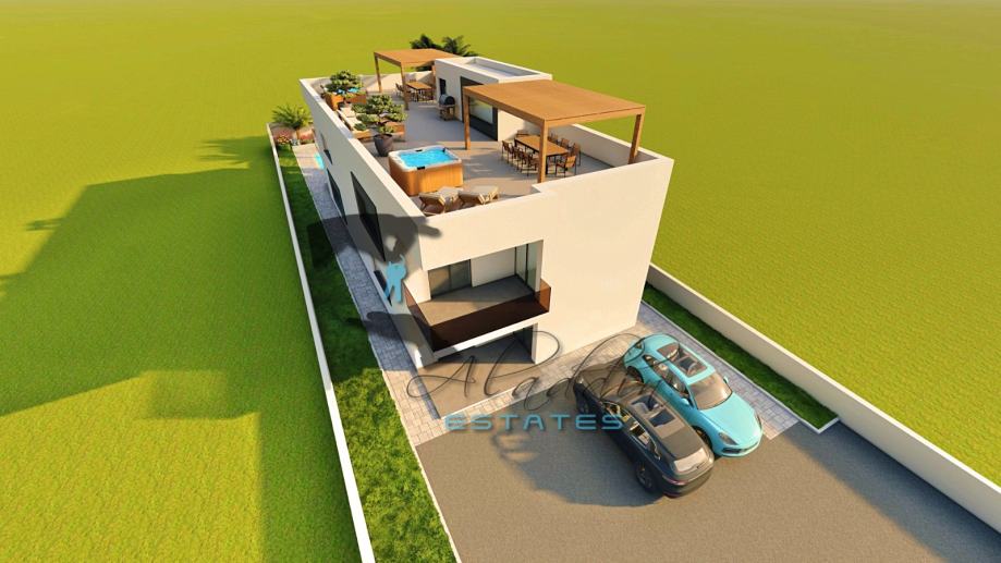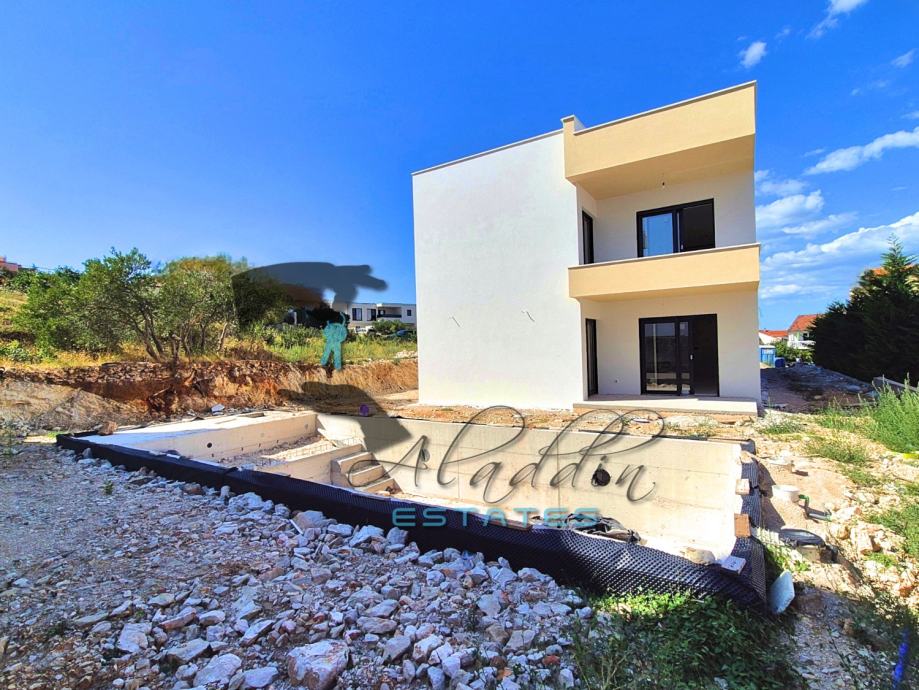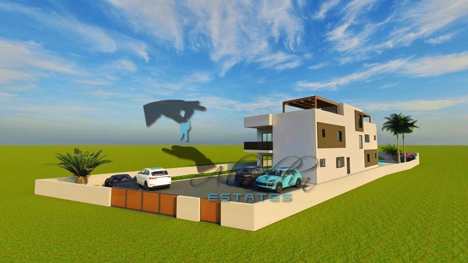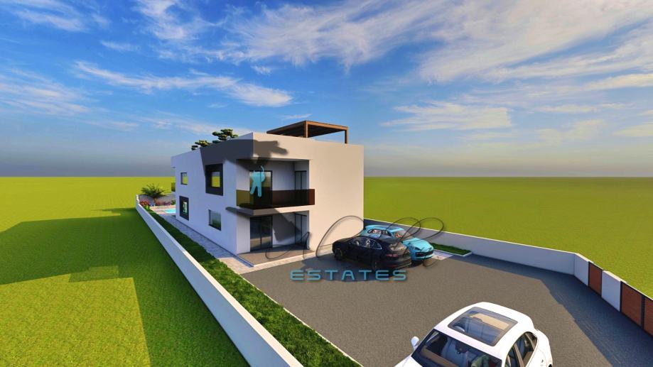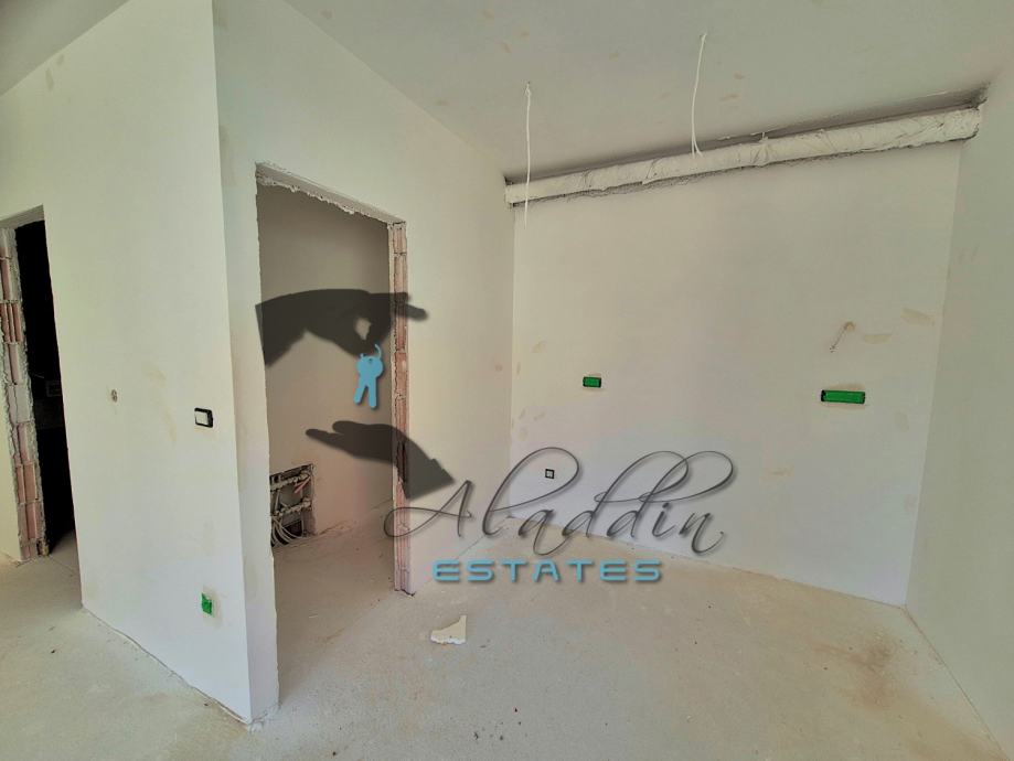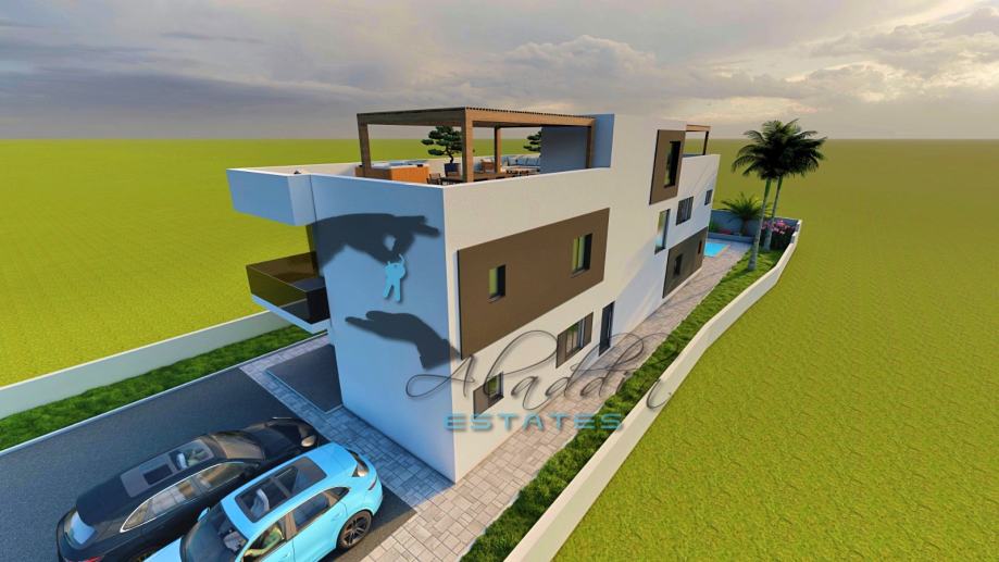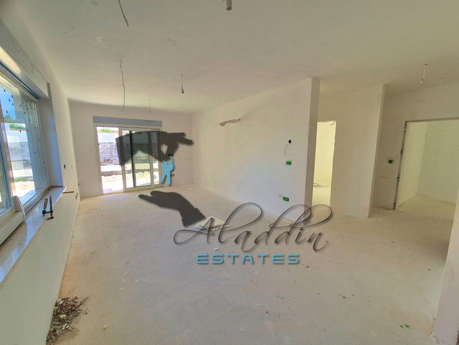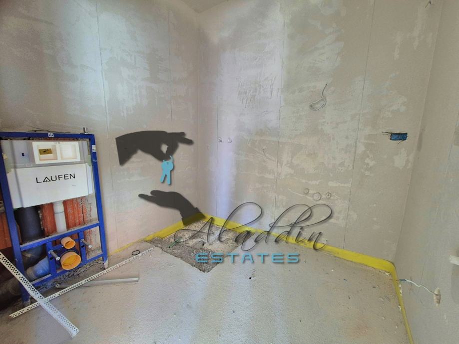 A modern two-storey residential building under construction in Vodice, with a total of 4 exceedingly comfortable apartments. Available is apartment S1 on the ground floor which consists of a living room, kitchen and dining room as one unit, two spacious bedrooms, two bathrooms, pantry and hallway. Apartment also offers a luxurious covered terrace and one parking space and includes a sizeable garden area, and a beautiful 35 m2 swimming pool, along with a large pool terrace and sunbathing area. The pool is advanced, highlighting salt water system instead of aggressive chlorine and with heating installations prepared. Apartment also has water and electricity connections on the terraces where an outdoor shower can be installed.