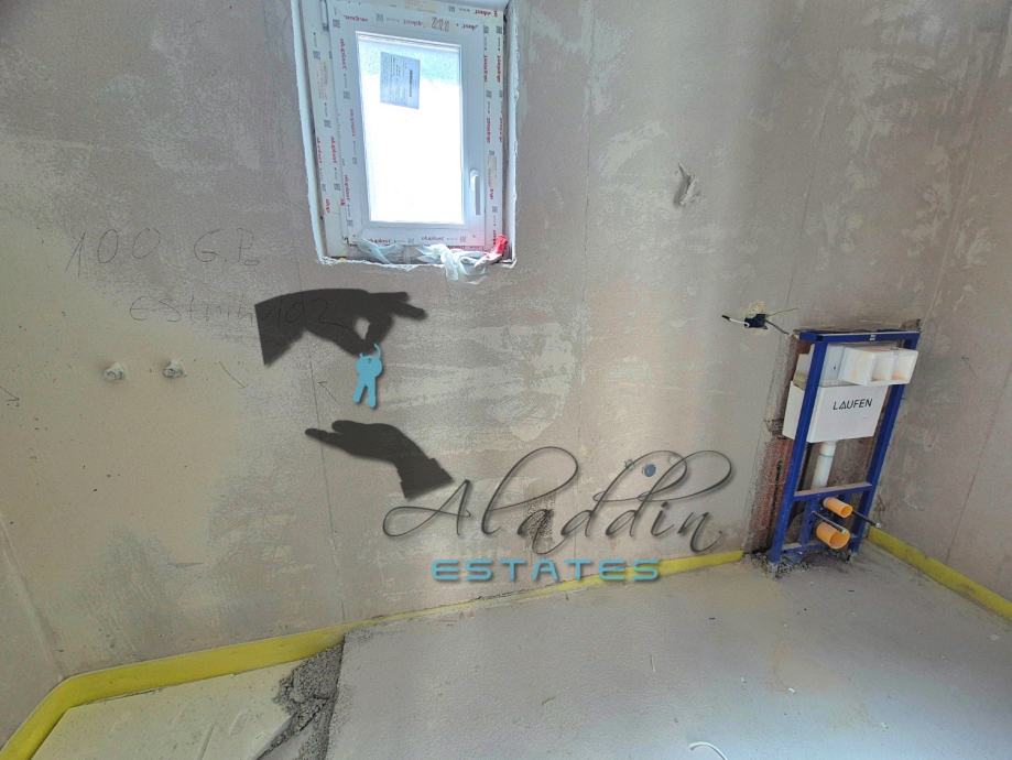 Apartment is built to particularly high construction standards and equipped with quality equipment, including air conditioning unit in every room, hydronic underfloor heating throughout the apartment with separate regulation of each room, first-class PVC carpentry with triple-layer insulating glass, electric aluminum shutters and mosquito nets on all windows and balcony doors, sockets for satellite/terrestrial television and internet in every room, elegant Italian ceramic tiles throughout the apartment, top-quality hydro (complete building) and thermal insulation (10cm polystyrene), elegantly equipped bathrooms, and security/fire-resistant entrance doors. 5G wireless internet network is also available and soon a connection for optical internet. Coupling to the sewage network is in progress.