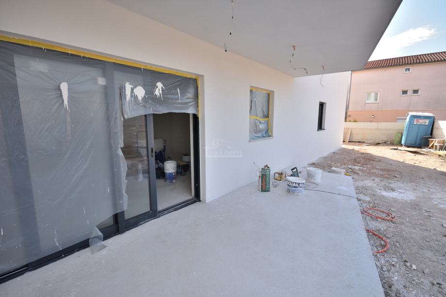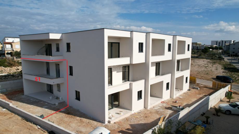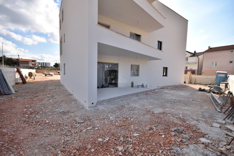 Vodice -**NOVOGRADNJA** prodaje se stan S8 u stambenoj zgradi s ukupno 8 stambenih jedinica , na mirnoj lokaciji . Zgrada modernog izgleda gradi se kvalitetnim materijalima i biti će opremljena prema posljednjem standardu gradnje . Od opreme izdvajamo : stiropor fasada 10cm , PVC stolarija antracit boje , ALU podizno klizne staklene stijene , rolete s električnim podizačima , komarnici , protuprovalna i protupožarna ulazna vrata , MDF sobna vrata , keramičke podne obloge , električno podno grijanje u dnevnom boravku , kuhinji i kupaonici , INVERTER klima uređaji u spavaćim sobama i dnevnom boravku , moderne kupaonske sanitarije ..