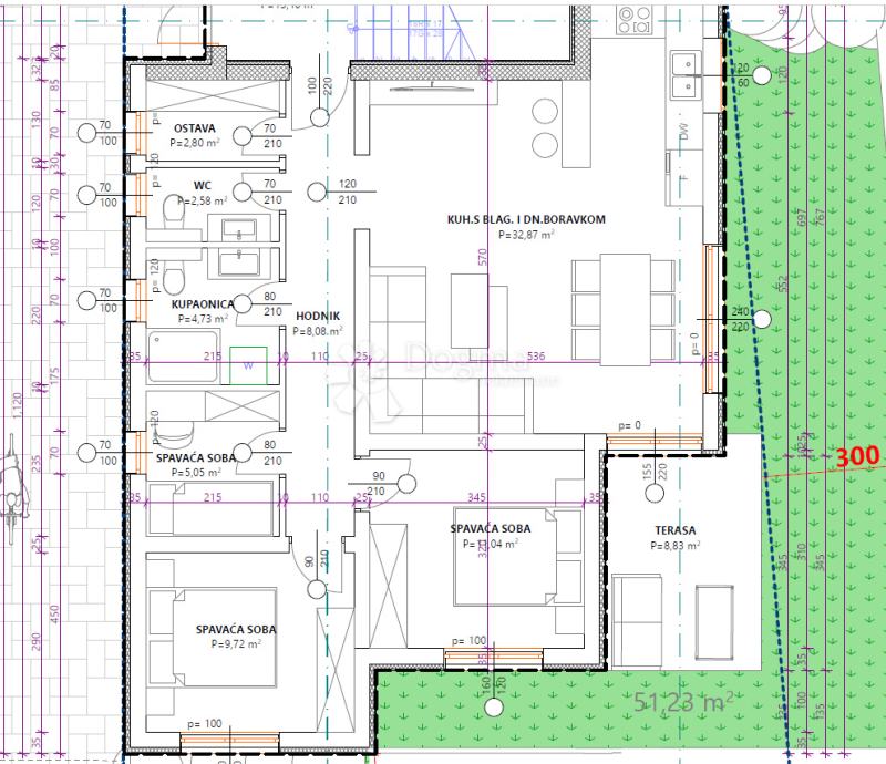 Unutar stana, velika kuhinja s blagovaonicom opremljena je modernim aparatima i nudi obilje prostora za kuhanje i druženje s obitelji i prijateljima. Svijetli i prostrani dnevni boravak idealan je za opuštanje nakon napornog dana, pružajući udobnost i toplinu doma.