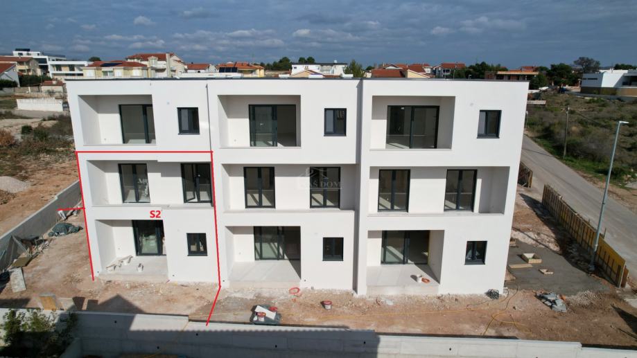 S2 stan ukupne neto površine 115,56m2 sastoji se o dvije etaže: prizemlje +kat . Prizemlje neto površine 50,05m2 sastoji se od hodnik, spremište,, kupaonica, kuhinja s blagovaonicom i dnevni boravak s izlazom na lođu. Kat površine 48,51m2 sastoji se od stubište,, predsoblje, dvije spavaće sobe, kuaponica , veršeraj i dvije lođe. stanu pripada vrt površine 110m2 i dva parkirna mjesta.