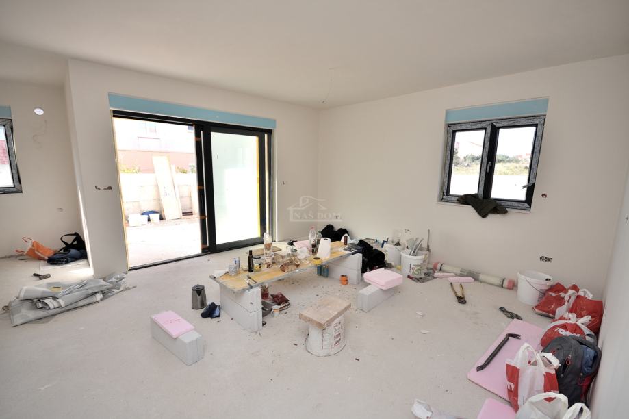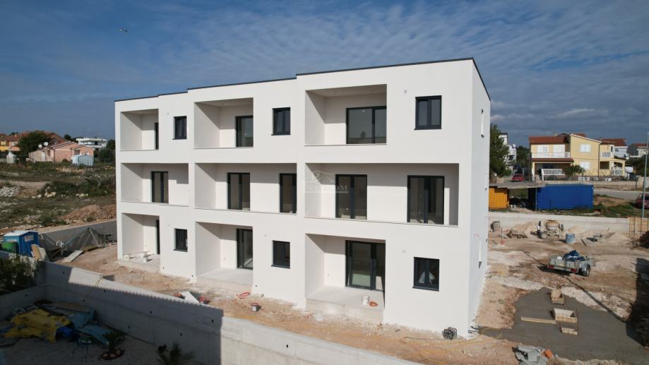 Vodice -**NOVOGRADNJA** prodaje se stan S8 u stambenoj zgradi s ukupno 8 stambenih jedinica , na mirnoj lokaciji . Zgrada modernog izgleda gradi se kvalitetnim materijalima i biti će opremljena prema posljednjem standardu gradnje . Od opreme izdvajamo : stiropor fasada 10cm , PVC stolarija antracit boje , ALU podizno klizne staklene stijene , rolete s električnim podizačima , komarnici , protuprovalna i protupožarna ulazna vrata , MDF sobna vrata , keramičke podne obloge , električno podno grijanje u dnevnom boravku , kuhinji i kupaonici , INVERTER klima uređaji u spavaćim sobama i dnevnom boravku , moderne kupaonske sanitarije ..