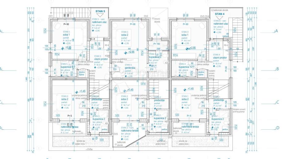 UKUPNA BRUTTO POVRŠINA STANA: 301,08 m², netto 119,60 m2.