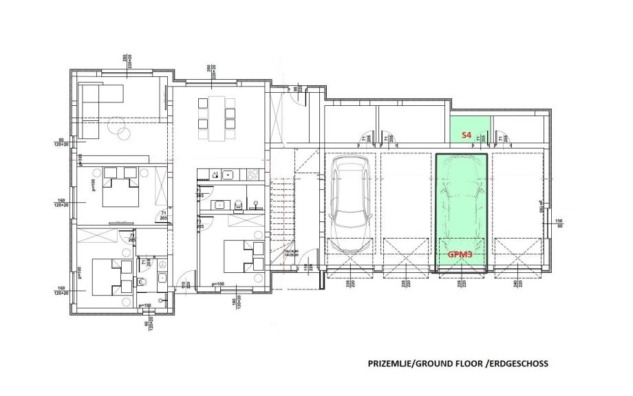 S3 stan na prvom katu ima ukupnu korisnu vrijednost površine 105,69m2 te se sastoji od predsoblje, kupaonica, spavaća soba, spavaća soba s vlastitom kupaonicom, kuhinja, blagovaonica i dnevni boravak te natkrivena terasa površine 7,52 m2. Stanu pripada spremište u prizemlju površine 3,37m2, garaža površine 15,73m2 te vrt površine 121m2. CIJENA: 391. 053,00 €