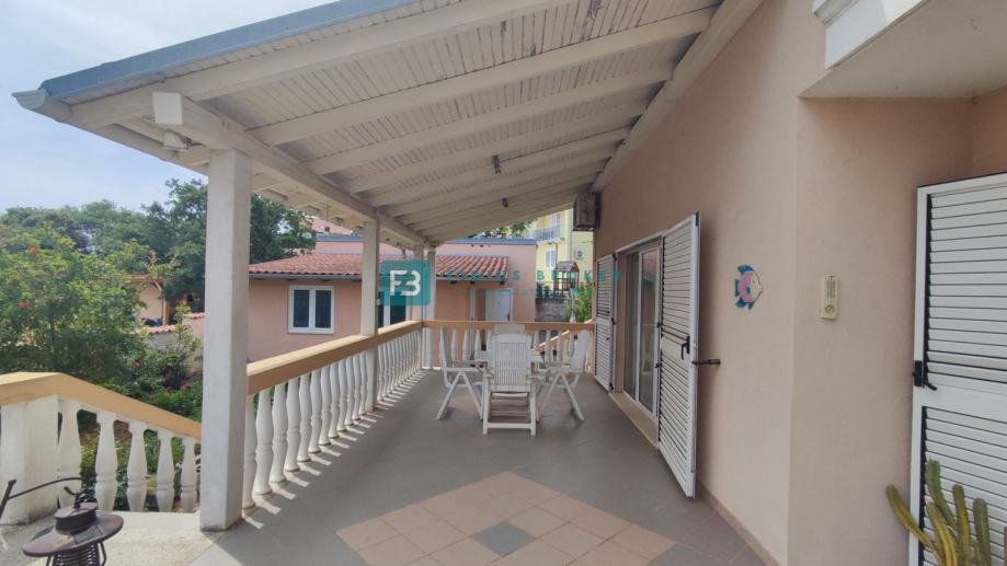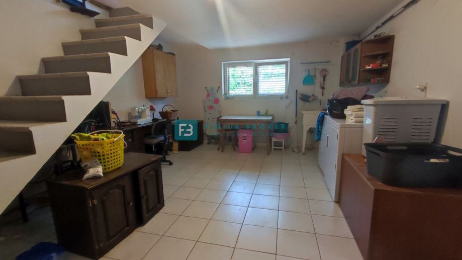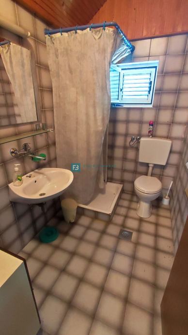 Samostojeća kuća ukupne bruto površine 477,30 m2 (kuća bruto površine 399,30 m2 + pomoćna zgrada 78 m2) proteže se na tri etaže: podrum + prizemlje + potkrovlje. Izgrađena je 1986. godine na zemljištu površine 1185 m2 koje je okruženo ogradom, popločano dvorište, asfaltni put, gradska rasvjeta. U podrum stvarne površine 101,62 m2 nalazi se garaža, pomoćna prostorija, spremište te kupaonica. U prizemlju stvarne površine 156,52 m2 smjestio se lijepi stan koji se proteže preko cijele etaže. Sastoji se od natkrivenog ulaza, hodnika, lođe, dvije spavaće sobe od kojih jedna ima vlastitu kupaonicu i walk-in ormar, spremište, WC, open space kuhinje s blagovaonicom, dnevnog dijela iz kojega se izlazi na lijepu natkrivenu i nenatkrivenu terasu površine 47,07 m2. S terase se vanjskim stubištem pristupa lijepo uređenom vrtu. Ulaz na gornju etažu je vanjskim stubištem. U potkrovlju stvarne površine 141,16 m2 smjestila su se dva stana. Svaki se sastoji od po dvije spavaće sobe, kupaonice, manje kuhinje i dnevnog dijela. Jedan stan ima lođu s koje se pruža pogled na more. U prostranom dvorištu se nalazi i pomoćna zgrada stvarne površine 78 m2 koja se može prenamijeniti u zaseban stan. Dvorište je dovoljno veliko da se može ugraditi i bazen. U dvorištu se nalazi i roštilj.
