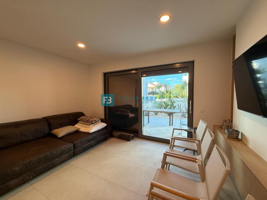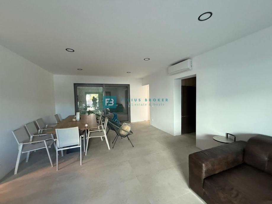 Novije gradnje samostojeća kuća sa ukupno 3 stana, ukupne korisne površine 406 m2 izgrađena je na zemljištu površine 811 m2. Objekt sastoji se od tri etaže: prizemlje + 1. kat + 2. kat. U dvorištu se nalazi bazen od 50 m2 s protustrujnim plivanjem i mogućnošću grijanja, vanjski tuš, te prostrano parkiralište za do 10 vozila. Kuća je opremljena prema posljednjim standardima gradnje: termo fasada, protuprovalna ulazna vrata, vanjska ALU stolarija s trostrukim ISO staklima i UV zaštitom, električni podizači roleta i komarnici, kvalitetna keramika, klima uređaj, moderne sanitarije u kupaonicama, električno podno grijanje u svim prostorijama. Okućnica je hortikulturno uređena i oplemenjena mediteranskim biljem i stablima.