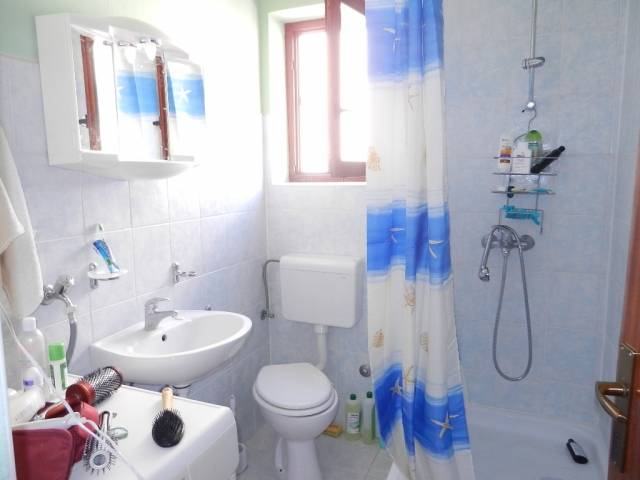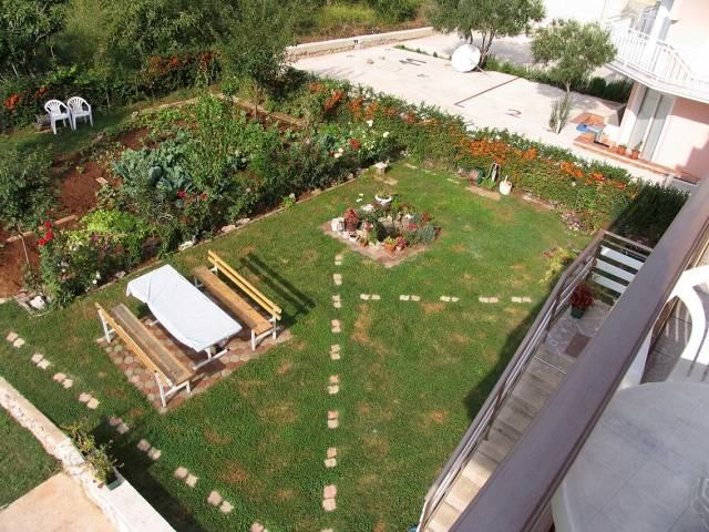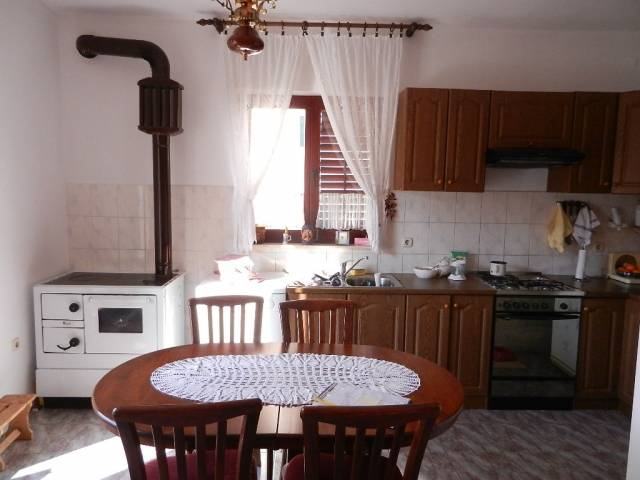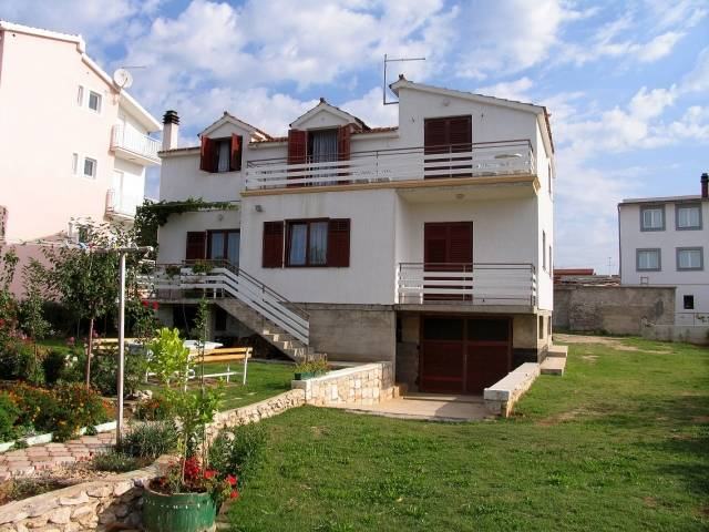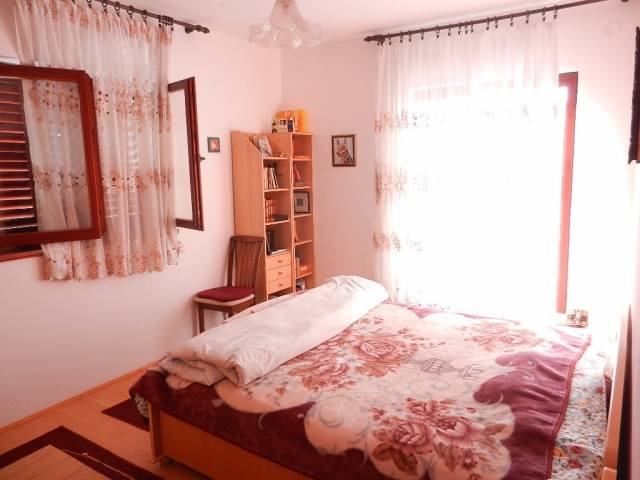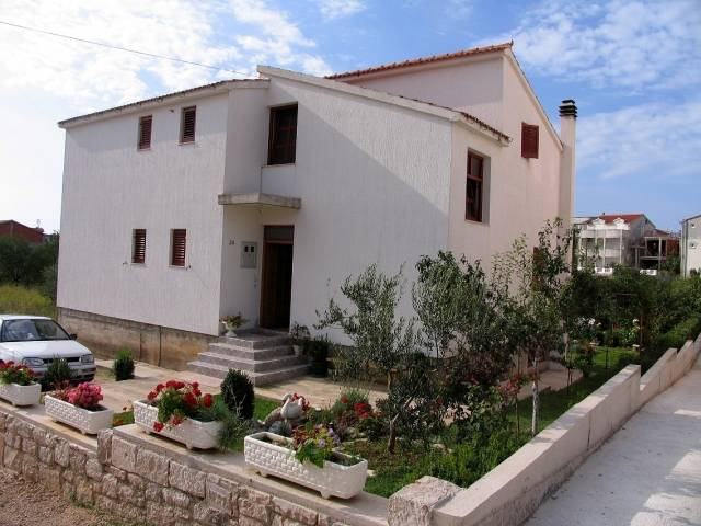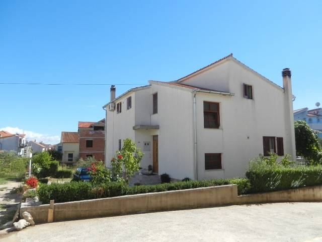 Slobodnostojeća obiteljska kuća u širem centru Vodica. Kuća je na tri etaže sa ukupno 360m2 stambene površine i okućnice površine 575 m2. Sastoji se od prostrane nedovršene garaže i dodatne prostorije površine 15 m2 u suterenu, jednog 2-sobnog komfornog apartmana u visokom prizemlju i 3-sobnog apartmana u potkrovlju . Apartmani su kompletno namješteni i kompletan namještaj je u traženoj cijeni. Udaljenost od mora je 1100 m, a od centra 600m.