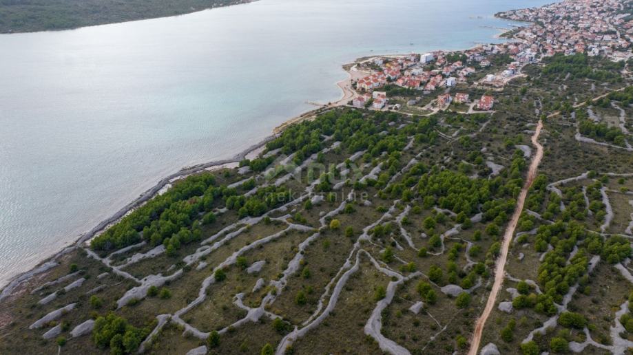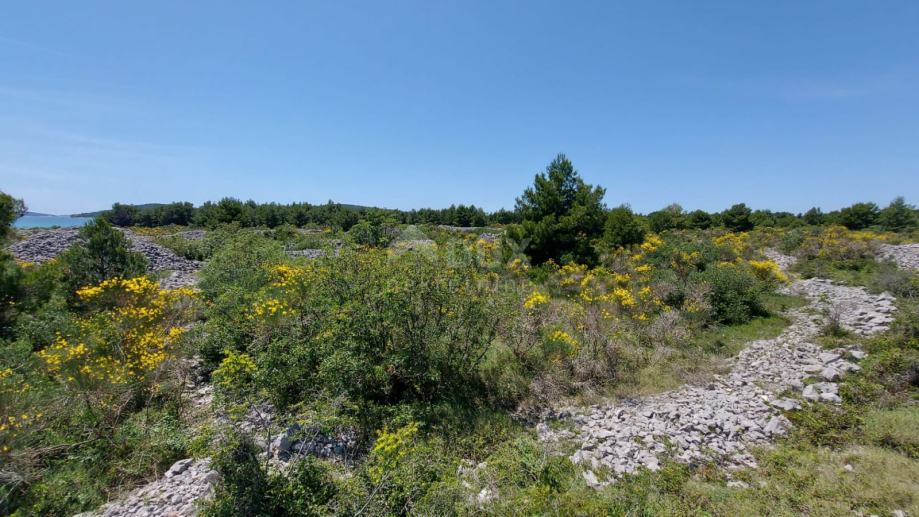 Od 16 000m2 ravnog zemljišta s pogledom na more i otoke, 5000m2 je poljoprivredno, buduće građevinsko s obzirom da kolni put 20m dalje izlazi na asfaltiranu lokalnu cestu sa pratećom cijelom komunalnom infrastrukturom i zgradama.