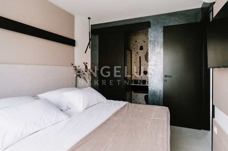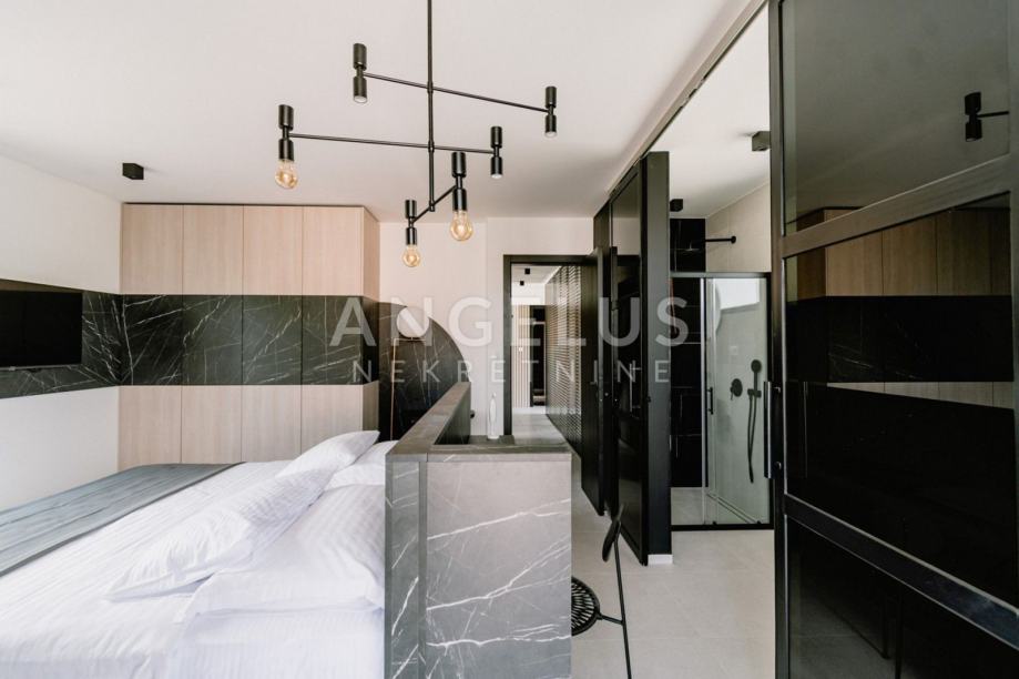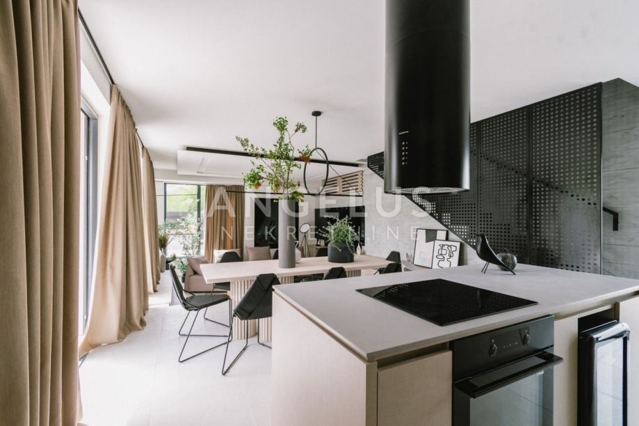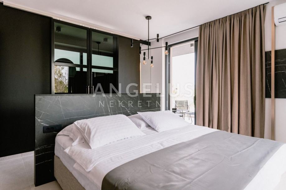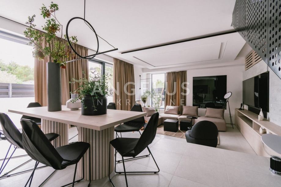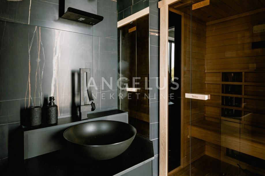 This luxury villa with a swimming pool, jacuzzi and sauna is built on a plot of land with a total size of 400 m2, with a total living area of 200 m2. It consists of two floors interconnected by internal stairs, on which, in addition to the kitchen with dining area and living room, there are also four bedrooms with bathrooms.