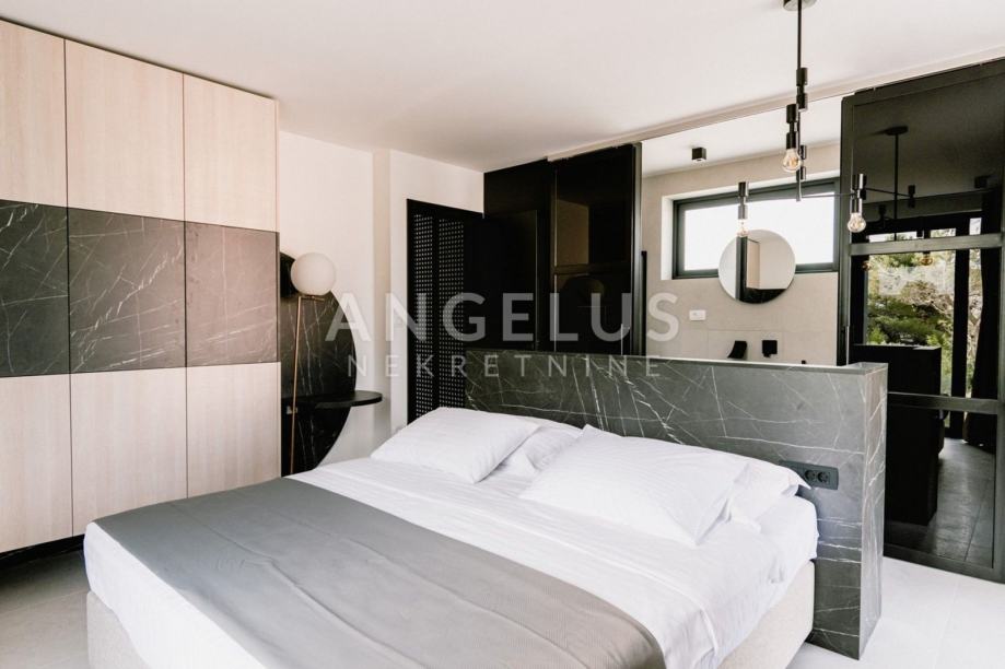 Arriving at the property of this impressive newly built villa, you will immediately be captivated by the private heated pool of 40 m2 surrounded by wooden deckchairs and the jacuzzi in the fenced yard in front of the villa. There is also a garden with various plants and a seating area, ideal for relaxing and enjoying complete privacy. In the yard there is also a barbecue and an outdoor dining table with chairs, ideal for serving real Dalmatian specialties on hot summer evenings and enjoying them.
