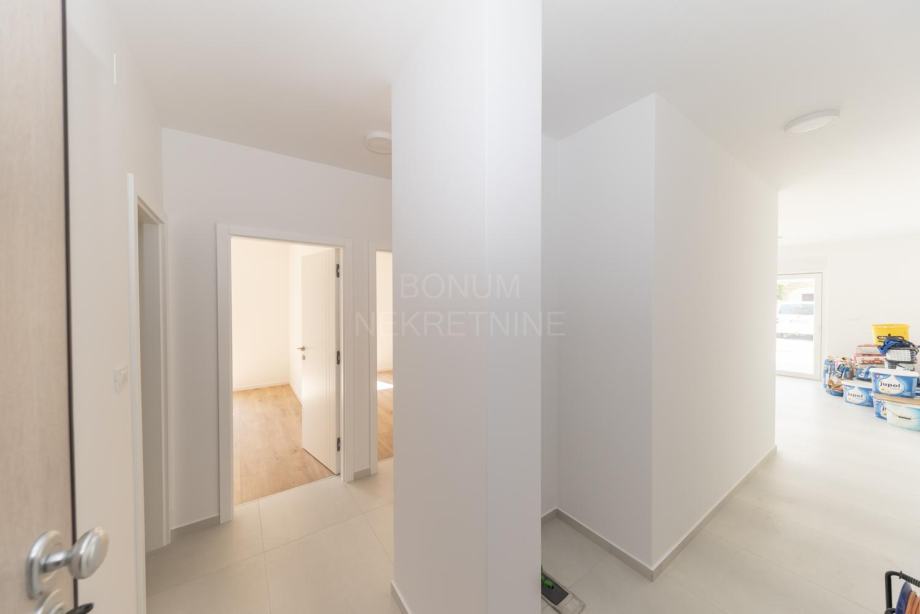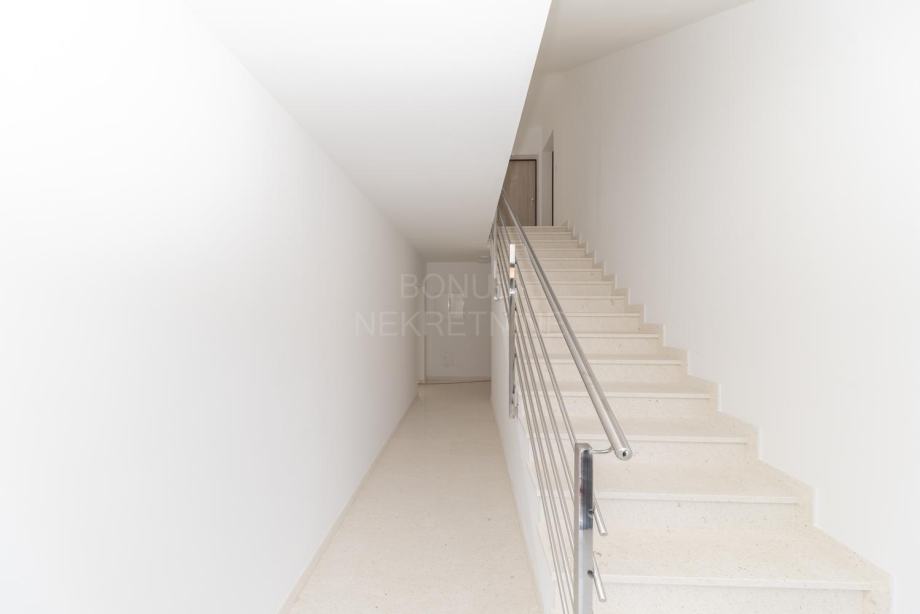 Prodaje se se apartman u prizemlju zgrade s vrtom, drugi red do mora, Vodice- Srima. Zgrada se nalazi na izuzetno atraktivnoj lokaciji, modernih je linija te ima svega osam stambenih jedinica. Sam apartman (69.47 m2 ) se sastoji od dvije spavaće sobe, kupaonice, toaleta, dnevnog dijela sa kuhinjom i blagovaonom u jednoj cjelini. Iz dnevnog dijela je izlaz na terasu od 31.10 m2 te vrt od 60.71 m2. Apartmanu pripada i jedno parkirno mjesto od 12.50 m2. Apartmani su izuzetno kvalitetno opremljeni (podno grijanje u kupaoni, klima uređaj, komarnici, električne rolete,...) Odlična nekretnina bilo za stanovanje tijekom cijele godine bilo za turističko iznajmljivanje.
