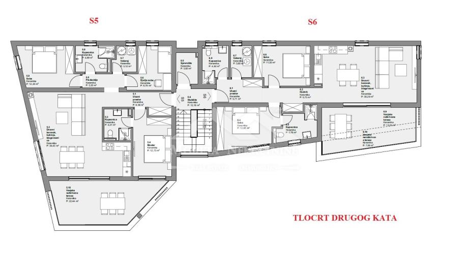 Stan oznake S5 koji se nalazi na drugom katu zapadnog dijela stambene zgrade. Posjeduje neto površinu od 104 m/2, a sastoji se od: ulaznog pretprostora, dnevnog boravka s pripadajućom kuhinjom i blagovaonicom iz kojih se izlazi na vanjsku natkrivenu terasu površine 22.44 m/2 s koje se pruža pogled na more i okolinu. Nadalje, stan posjeduje tri spavaće sobe od kojih je jedna master spavaća soba s vlastitom kupaonicom, jedne zajedničke kupaonice i praonice. Stanu pripada jedno parkirno mjesto u dvorištu zgrade.