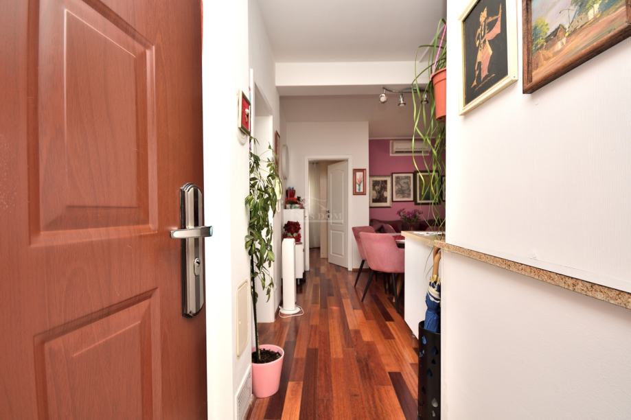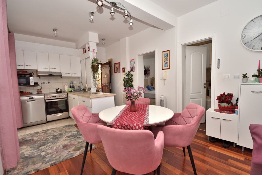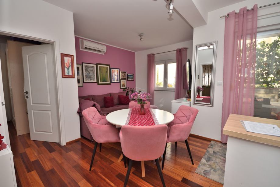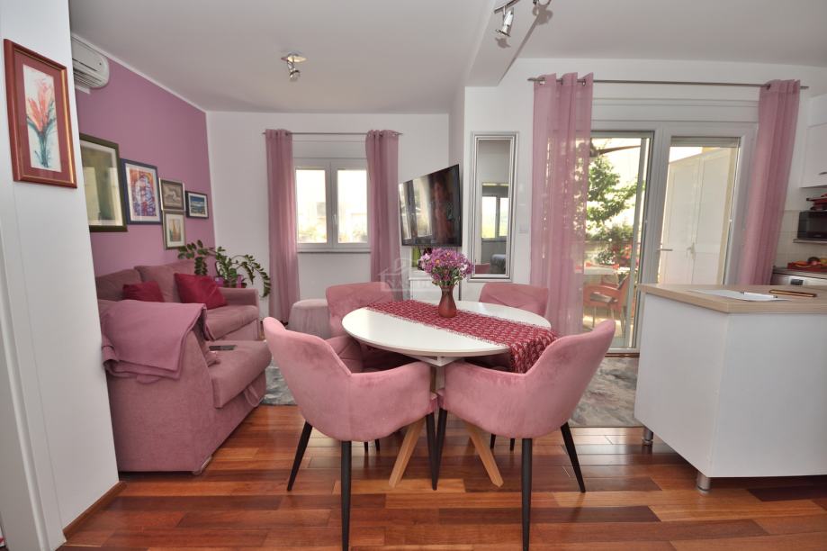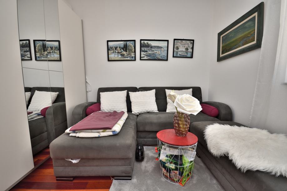 Stan je kompletno opremljen s novim namještajem i klimatiziran. Namještaj je u cijeni stana.
