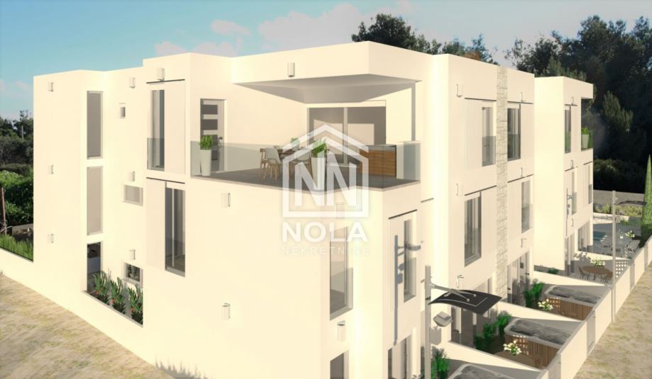 U ovoj kući nalazi se 8 jedinstvenih stanova suvremenog i elegantnog dizajna. Bijela vanjska boja s antracit prozorima od poda do stropa, balkonima u francuskom stilu i kliznim prozorskim sjenilima pridonijet će mirnom i skladnom dizajnu.