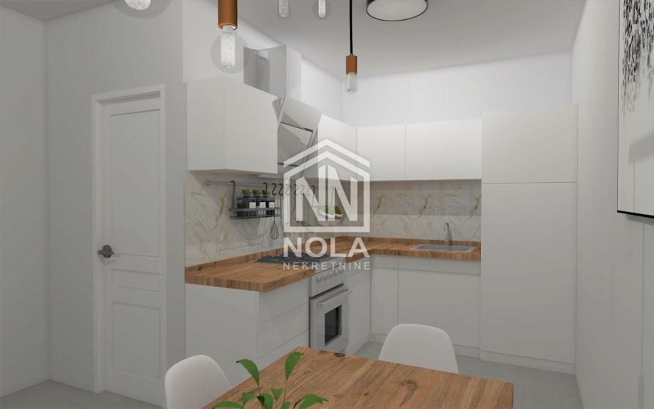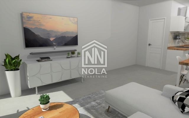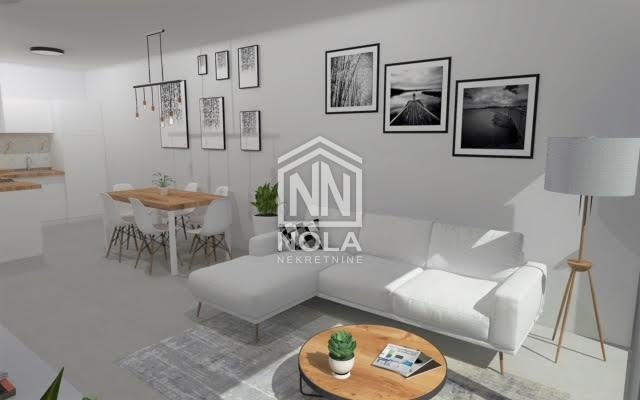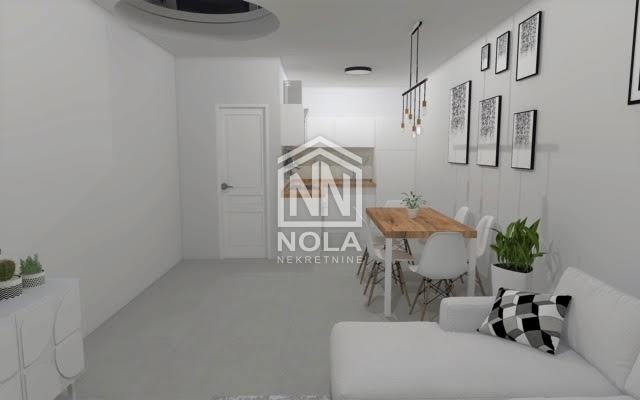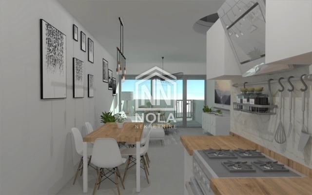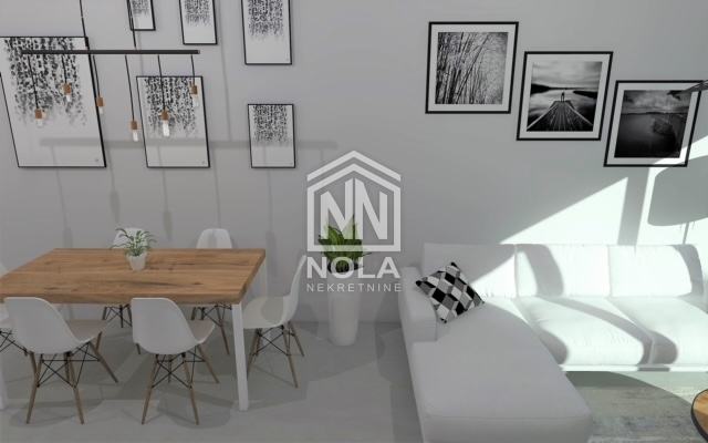 Ovaj stan ima 78,26 m2, i okućnicu od 34m2, na kojoj je moguće uz terasu napraviti bazen.