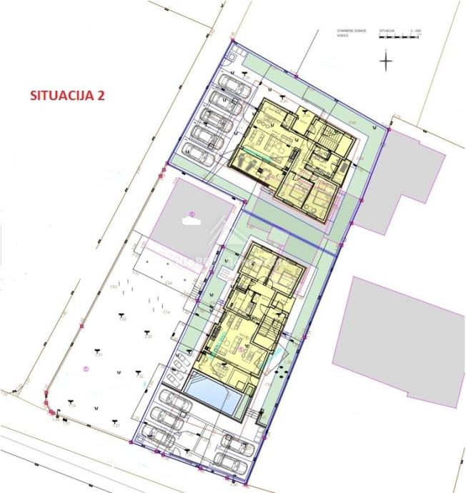 Stan 2- stan/apartman na prvom katu stambene zgrade neto površine od 109.59 m/2 uključujući i dva parkirna mjesta. Stan se sastoji od ulaznog prostora, kuhinje s ostavom, blagovaonice, prostranog dnevnog boravka površine čak 37.75 m/2 s izlazom na natkrivenu lođu površine 15.40 m/2, dvije spavaće sobe, kupaonice, odvojenog WC-a i još dvije natkrivene lođe. Napominjemo da u postupku etažiranja završene građevine postoji mogućnost odstupanja od navedenih kvadratura.