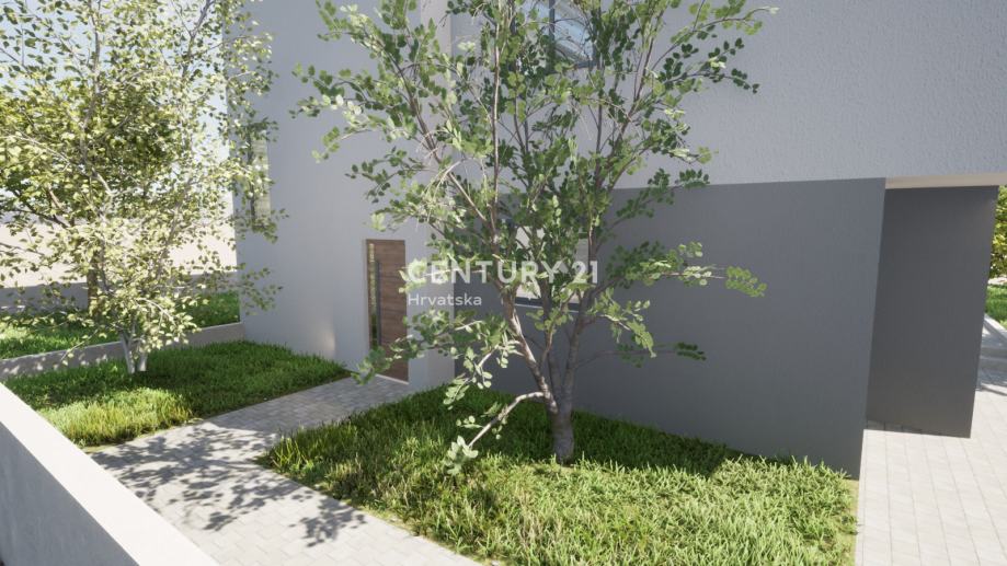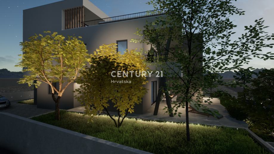 U mirnom dijelu Vodica, svega 4 minute vožnje ili 15-ak minuta lagane šetnje od mora, prodaje se atraktivan stan na prvom katu nove zgrade s ukupno četiri stambene jedinice.