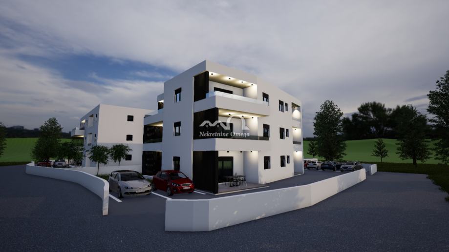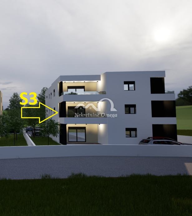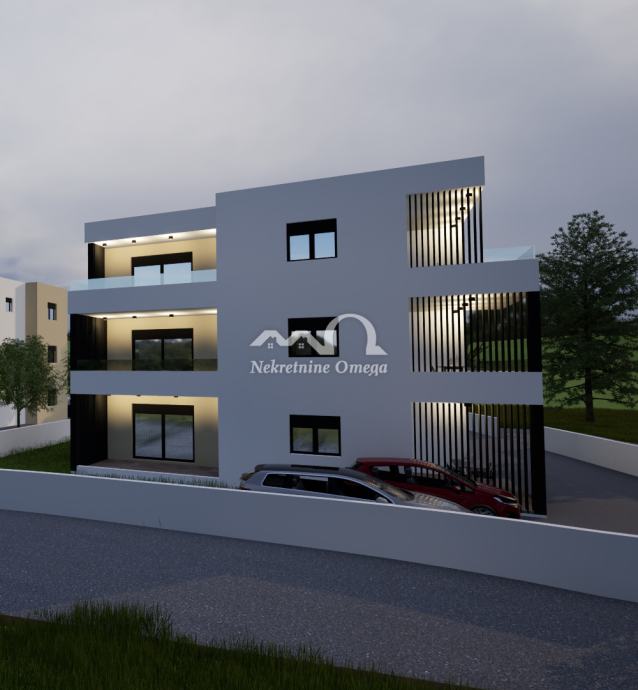 Prodaje se moderan stan S3 smješten na prvom katu manje stambene zgrade u mirnom dijelu Vodica, idealan za uživanje tijekom cijele godine ili kao investicija za turizam.