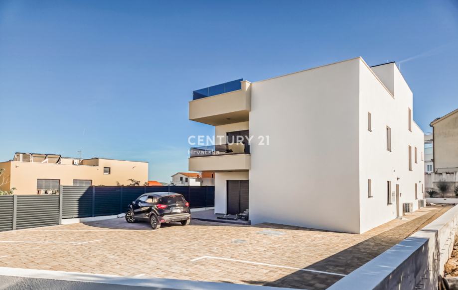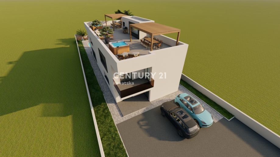 Posebnu vrijednost ovom stanu daje krovna terasa od čak 85m2 s koje se pruža lijepi pogled na mjesto kao i na more. Stanu pripadaju dva parkirna mjesto.