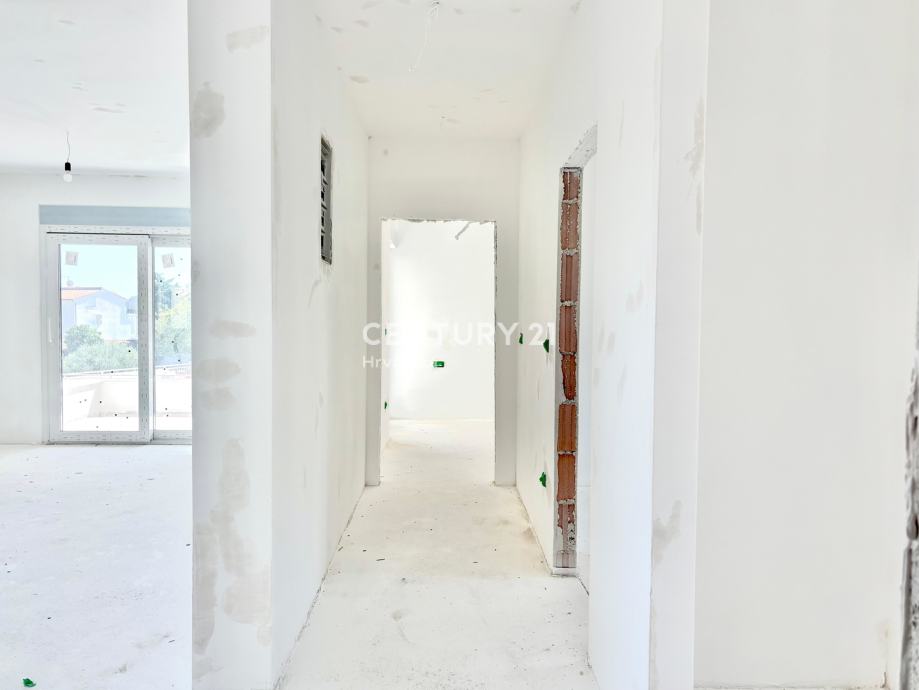 Stan je smješten u zgradi koja je u cijelosti hidroizolirana, a opremljen je trostrukom PVC stolarijom s ALU električnim podizačima i komarnicima. Cijelim prostorom proteže se podno grijanje, a podne obloge čini kvalitetna talijanska keramika. Fasada je izvedena sa 10 cm stiropora, dok krovna terasa od 85 m2 ima hidroizolaciju, struju, vodu i sustav odvodnje. Useljenje je predviđeno za 11/2025