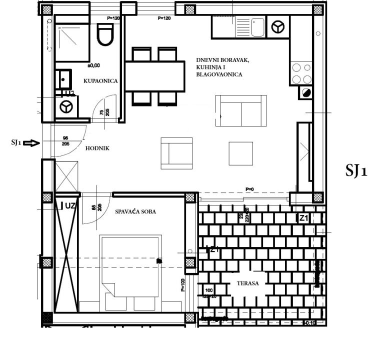 STAN S1 – PRIZEMLJE S VRTOM | 54,00 m2 | VODICE, N1