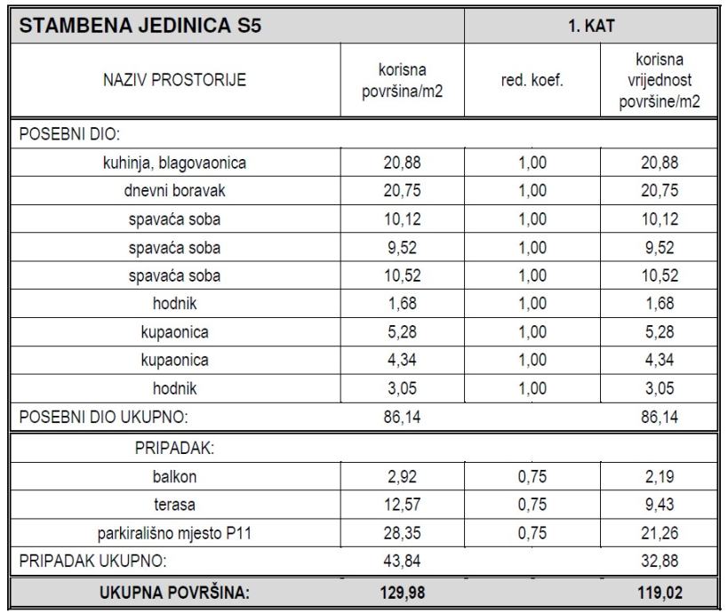 Površina: 119,02 m2 (neto korisna površina s koeficijentima)
