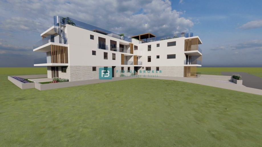 Započela je izgradnja moderne stambene zgrade s ukupno 12 stanova. Sastoji se od pet etaža: podrum + prizemlje + 1. kat + 2. kat + krovna terasa. Svaka etaža ima po 4 stana. Zgrada se gradi kvalitetnim materijalima prema posljednjim standardima gradnje i biti će opremljena: stiropor fasada, protuprovalna ulazna vrata, PVC antracit stolarija, visokokvalitetne keramičke podne obloge, električno podno grijanje u kupaonicama, moderne kupaonske sanitarije, klima uređaj u svakoj prostoriji, električni podizači roleta, komarnici u cijelom stanu, staklene ograde na terasama, TV/Internet priključak u sobama i dnevnom boravku. Garažna mjesta smještena su u podrumskom dijelu objekta. Zgrada ima priključak na gradsku kanalizaciju i asfaltirani pristupni put. Planirani rok završetka gradnje i useljenje - ljeto 2026. godine.