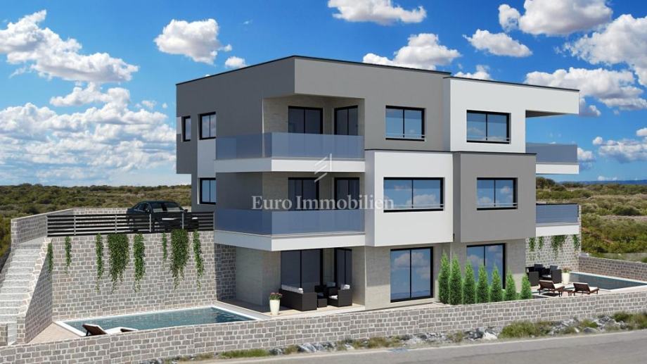 Prodaje se troetažan stan S1 s bazenom i dvorištem u Vodicama.