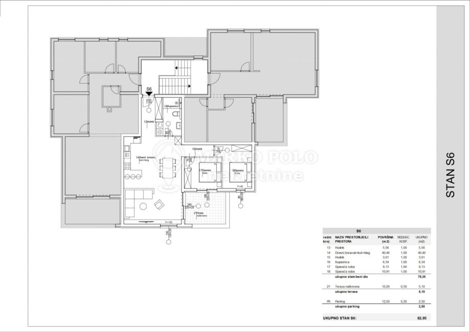 VODICE - Prodaje se Trosobni stan- "S-5" NOVOGRADNJA- od 98m2 stambenog prostora , te 2 parkirna mjesta. Stan se sastoji od ulaznog hodnika- hol, 2 parkirna mjesta, Kuhinje i blagovaonice s dnevnim boravkom, kupatilom i natkrivenom terasom, što čini ukupnu površinu od 99 m2. Dovršenost do sa modernim i kvalitetnim materijalima do energetske kategorije "A". Osigurana po 2 parkirališna mjesta po svakom stanu. Lokacija lako dostupna sporednim pristupnim putem bez oterećenja prometnih gužvi. Blizina nekoliko trgovačkih centara. Stanovi su predviđeni za cjelogodišnji boravak. Podna grijanja i solarna toplinska energija.