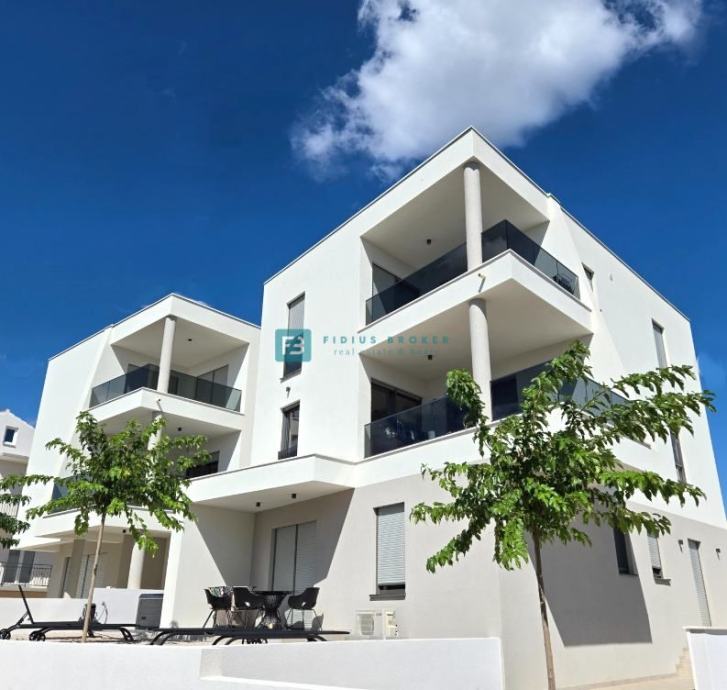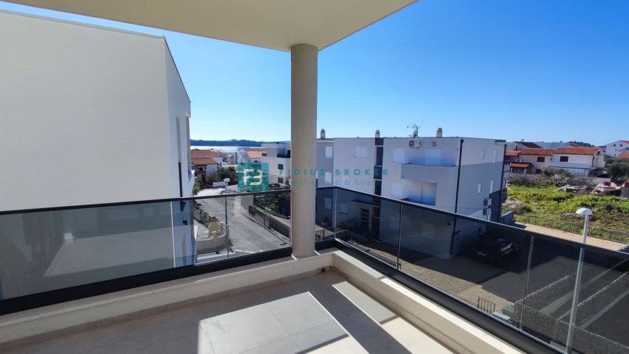 VODICE - Na prodaju novi luksuzni stan s terasom, smješten na 2. katu s kojeg se pruža predivan pogled na more, udaljen svega 400 m od plaže!