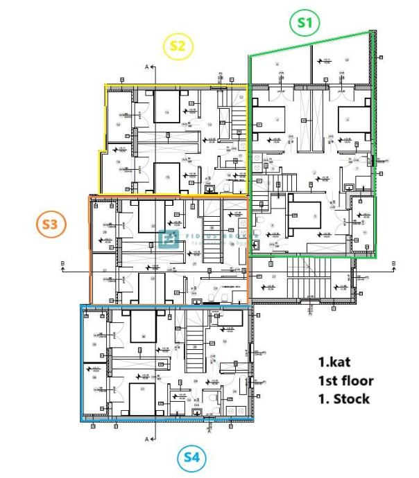 Dvoetažni stan S1 ukupne korisne površine 172,73 m2 (neto stambena površina 152,73 m2) + 140 m2 okućnice + 2 parkirna mjesta površine 25 m2. U prizemlju se nalazi hodnik, spremište, kupaonica, kuhinja s blagovaonicom i dnevni boravak s izlazom na natkrivenu terasu površine 18,50 m2 i vrt. Unutarnje stubište vodi na kat gdje su se smjestile 3 spavaće sobe, predsoblje, 2 kupaonice, praonica, natkrivene terasa i lođa. Cijena iznosi 395.000 €.