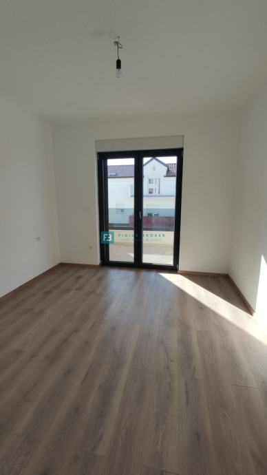 Objekt se nalazi na mirnoj lokaciji, udaljen je 1500 m od centra grada i 1800 m od plaže. U tijeku je izgradnja manje stambene zgrade sa ukupno 8 stanova (4 dvoetažna stana i 4 stana na 2. katu zgrade). Stambeni objekt modernog izgleda sastoji se od tri etaže: prizemlje + 1. kat + 2. kat. Zgrada je građena kvalitetnim materijalima opremljena prema posljednjim standardima gradnje: stiropor fasada, PVC stolarija antracit boje, ALU podizno klizne staklene stijene, protuprovalna i protupožarna ulazna vrata, rolete s električnim podizačima, komarnici, MDF sobna vrata, kvalitetne keramičke podne obloge, laminati u spavaćim sobama, moderne kupaonske sanitarije, električno podno grijanje u dnevnom boravku i kupaonici, staklena ograda na terasama, klima uređaji u spavaćim sobama i dnevnom boravku. Zgrada je završena i spremna za useljenje.