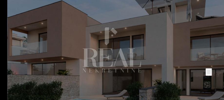 Nekretnina se smijestila na mirnoj lokaciji na blagoj uzvisini što omogućava otvoren pogled na more. Stan se sastoji od prizemlja i kata i krovne terase, u prizemlju se smijestila kuhinja s blagovaonicom , dnevni boravak te spavaća soba i kupaonica i prostrana terasa ispred koje je bazen 15 m2 dok su na katu dvije spavaće sobe svaka sa kupaonom i garderobom , te izlaz na krovnu terasu koja je djelomično natkrivena