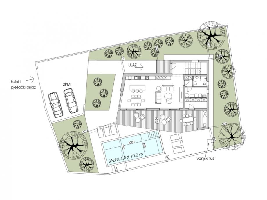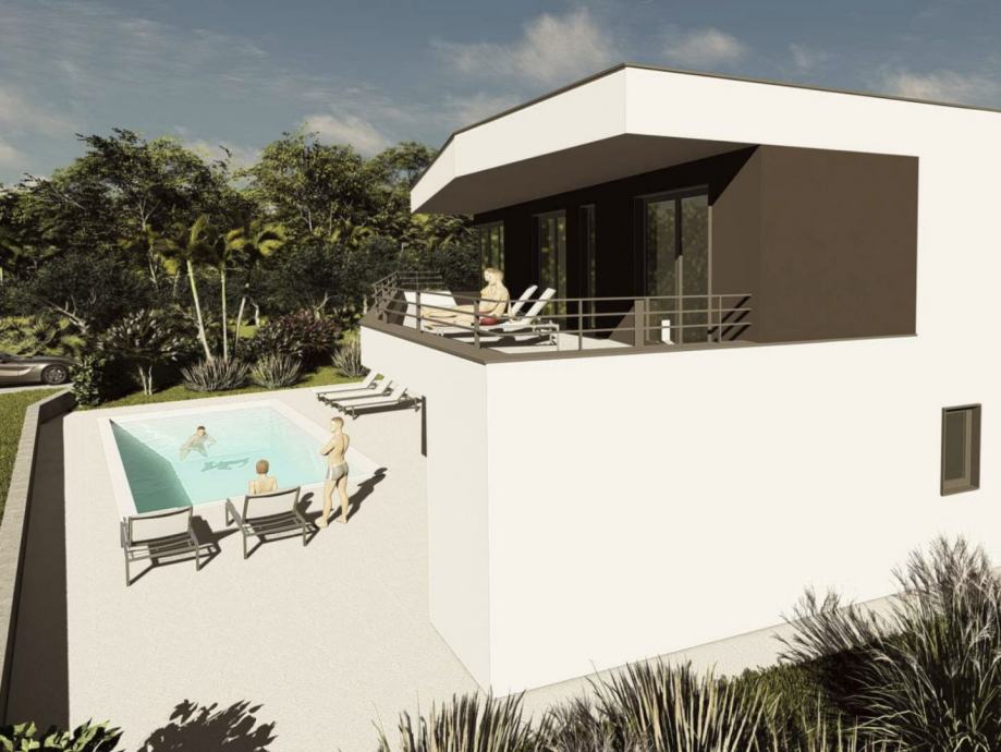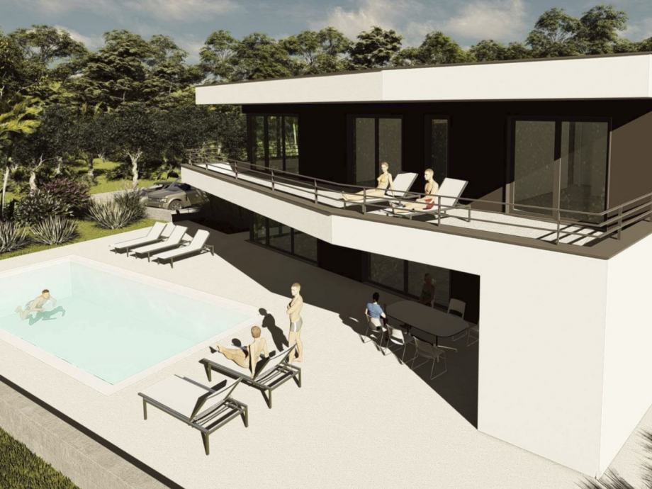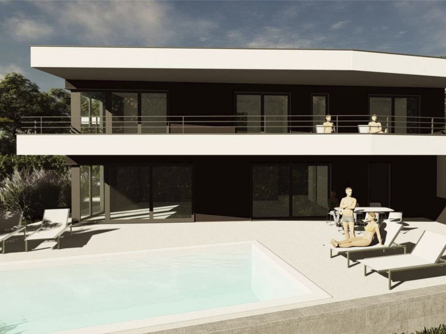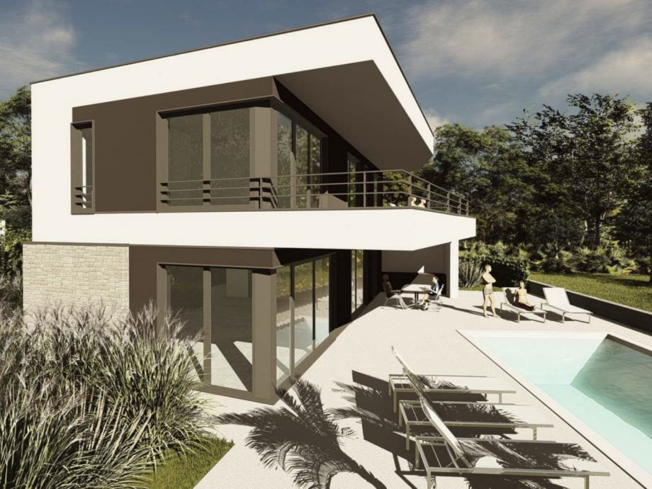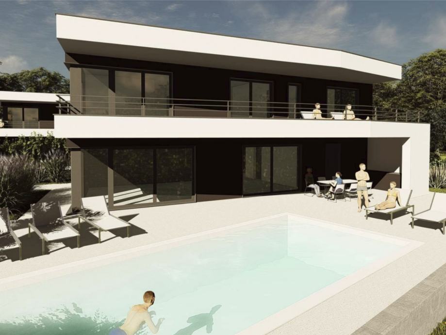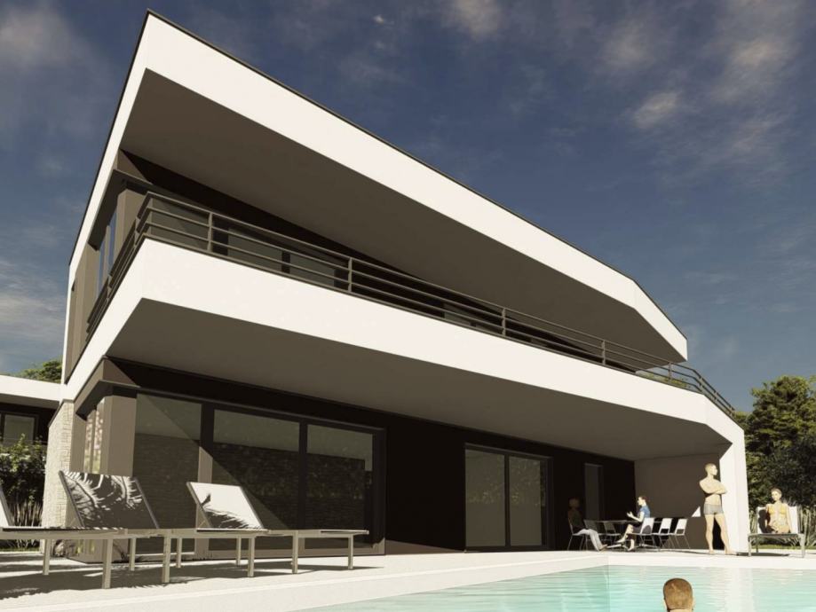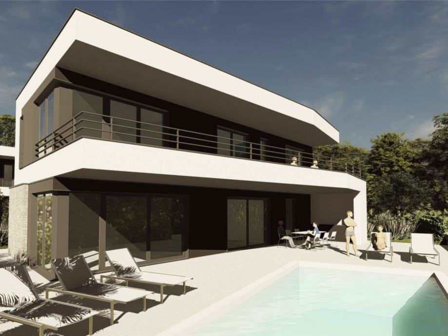 U cijenu je uključena važeća građevinska dozvola s podmirenim komunalnim doprinosima za izgradnju moderne vile površine približno 202 m², s ukupno 110 m² terasa, tri spavaće sobe i četiri kupaonice.