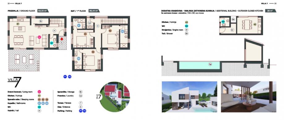 Osim glavne kuće, na parceli se nalazi i pomoćni objekt, dok bazen od 30m2 pruža dodatni luksuz i mjesto za opuštanje.