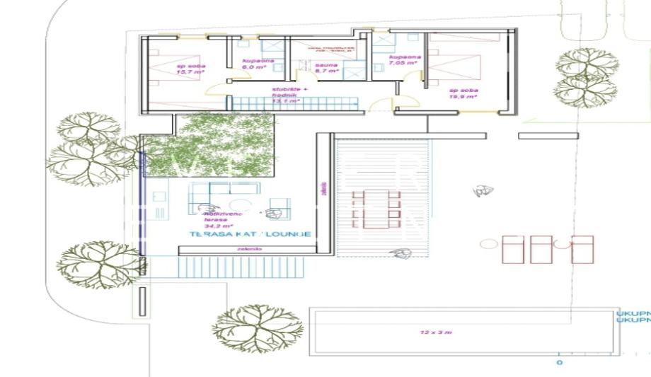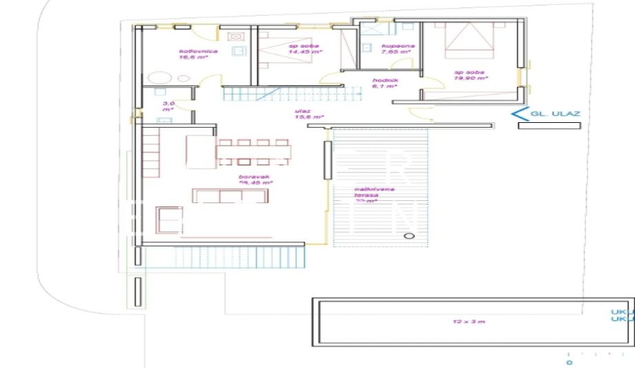 U vrtu vile biti će bazen sa sunčalištem dimenzija 3 x 12 m.