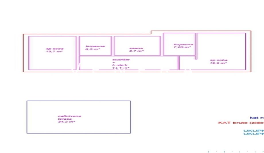 Vila će imati prostrani dnevni boravak, 4 sobe, 3 kupaone s toaletom, saunu, gostinjski toalet, dodatni tuš u prostoriji saune, vešeraj.