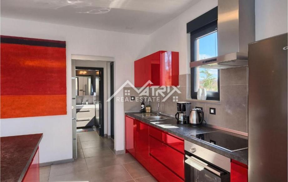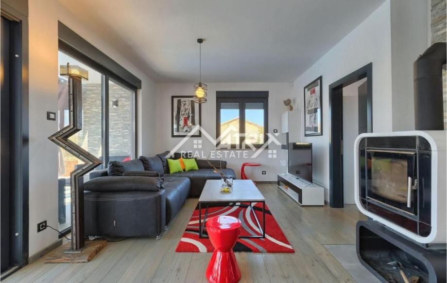 Kuća je opremljena s tri klima-uređaja, peći na pelete i alarmnim sustavom, te se prodaje potpuno namještena i opremljena kao što je prikazano na fotografijama – spremna za useljenje ili turistički najam.