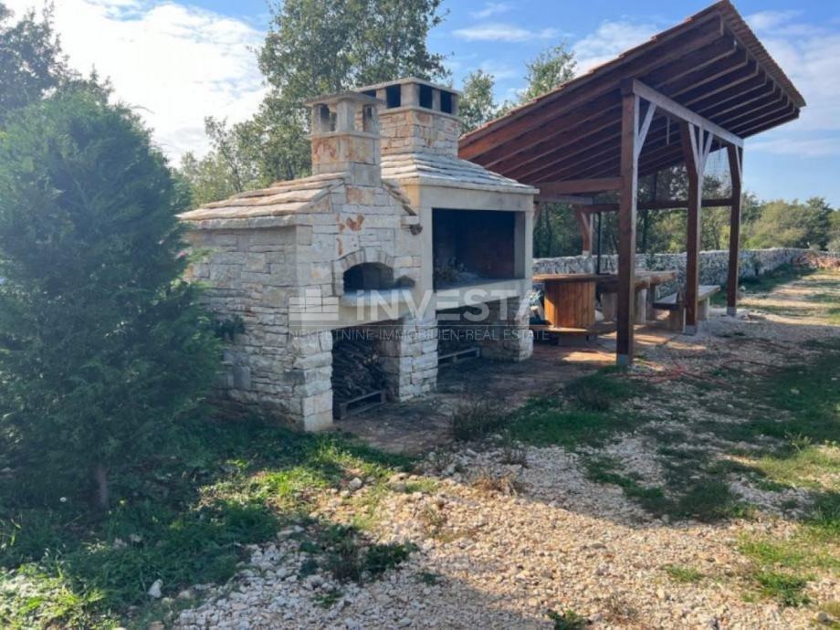 Na ulazu zemljišta postavljena su ulazna vrata, a parcela je ograđena žicom i renoviranim suhozidom. Na parceli nabrajamo razne sadržaje poput starog istarskog kažuna, velikog drvenog stola s nadstrešnicom, kamina, lovačke kućice, 210 maslina te razne voćke. Zemljište ima vodu, uključujući i vodomjer. Pristupni put je uredan i lako dostupan.
