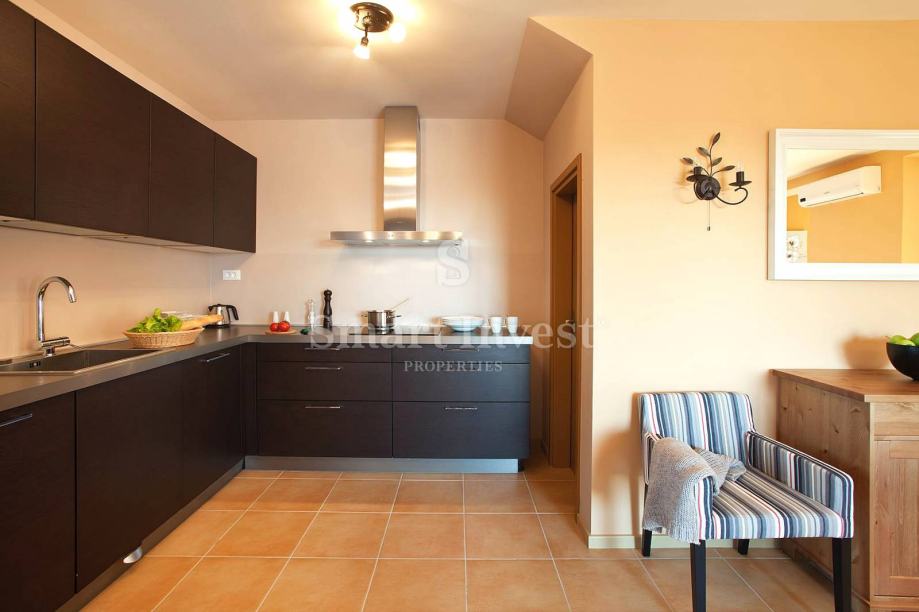 U prizemlju se nalazi hodnik, dnevni boravak s kaminom obloženim kamenom i gredama, kuhinja s blagovaonicom, dvije spavaće sobe s kupaonicama. Na katu je smještena prostrana spavaća soba s vlastitom kupaonicom koja nudi potpunu privatnost i udobnost.