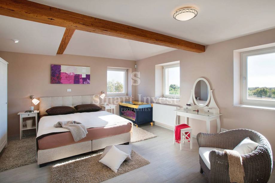 Vila površine 230 m2 smještena je na lijepo uređenom zemljištu površine 1.702 m2, ima 3 spavaće sobe i 3+1 kupaonice.