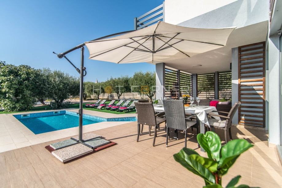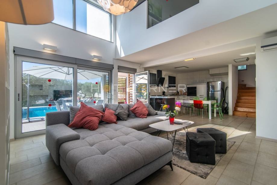 Prodaje se luksuzna vila smještena na prostranoj okućnici od 1.294 m², s prekrasnim pogledom na Brijune i Pulu. Kuća je pažljivo održavana i redovito obnavljana svakih 4 do 5 godina, uključujući fasadu i namještaj, što osigurava da je stanje nekretnine praktički kao novo. Vila raspolaže modernim podnim grijanjem u cijelom prostoru, a vanjski bazen također je grijani, pružajući savršene uvjete za uživanje tijekom cijele godine.