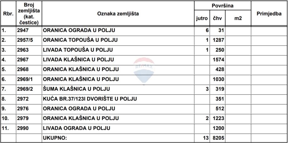 - 4 ha livade južno od kuće, koja se proteže sve do javne ceste