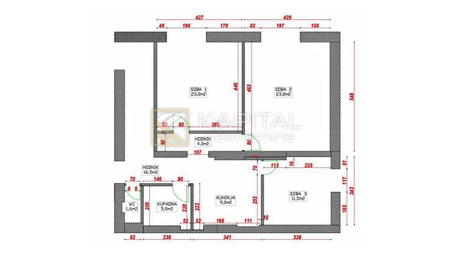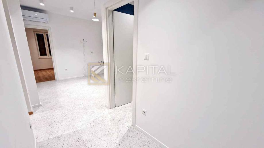 Ukupna površina stana je 92 m2 + balkon 7,5 m2 na koji se izlazi iz dvije vece sobe, a stanu pripada i podrum povrsine cca 5 m2. Moguće ga je lako prenamijeniti u trosobni stan s open space kuhinjom i dnevnim boravkom, ili urediti kao poslovni prostor. Za sve dodatne informacije nazovite 091/540-8520 ili 099/2196-353.