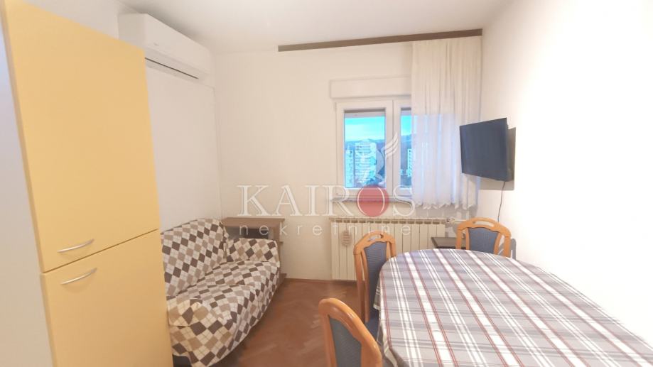VOJAK, stan za dugoročni najam, površine 31 m2, jednosoban klasičan, na višem katu nebodera, s izlazom na veliku terasu s panoramskim pogledom na more. Stan je vrlo ugodan, uredan i održavan. Blizina javnog prijevoza, studentskog kampusa i dr. sadržaja.